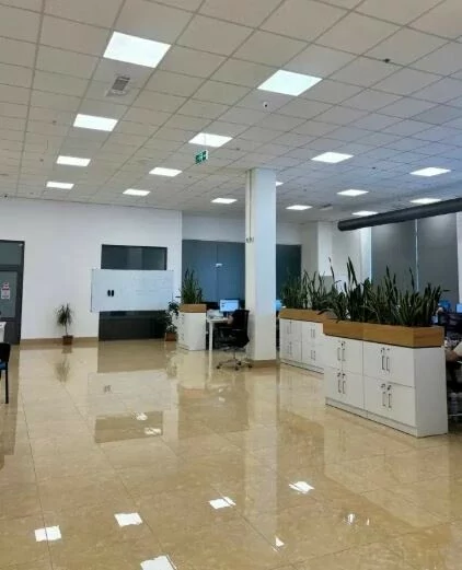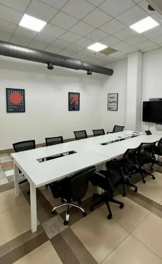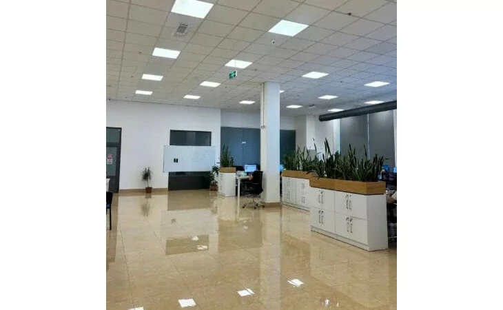 A 3-story office space with a total area of 2200 square meters is being rented.