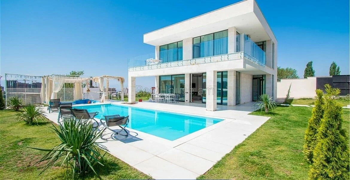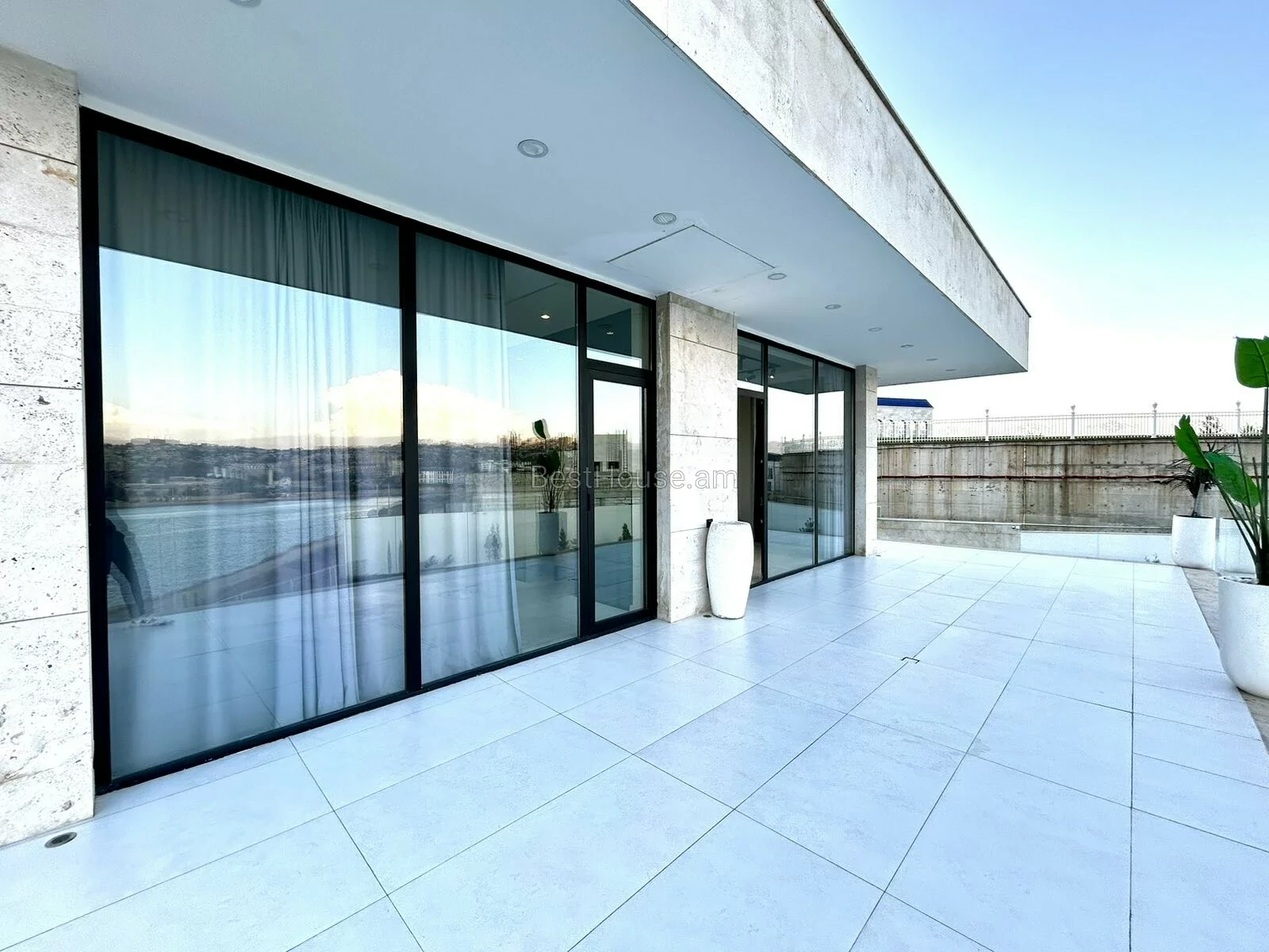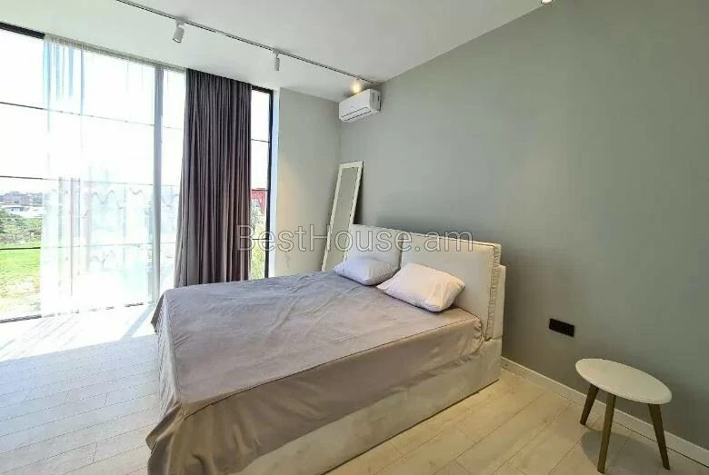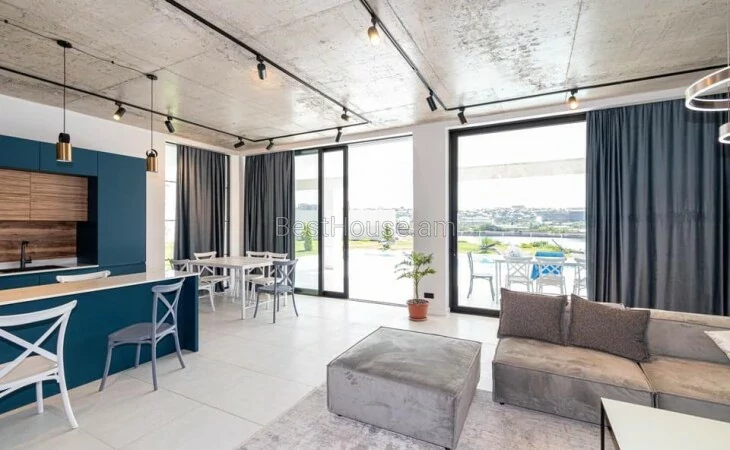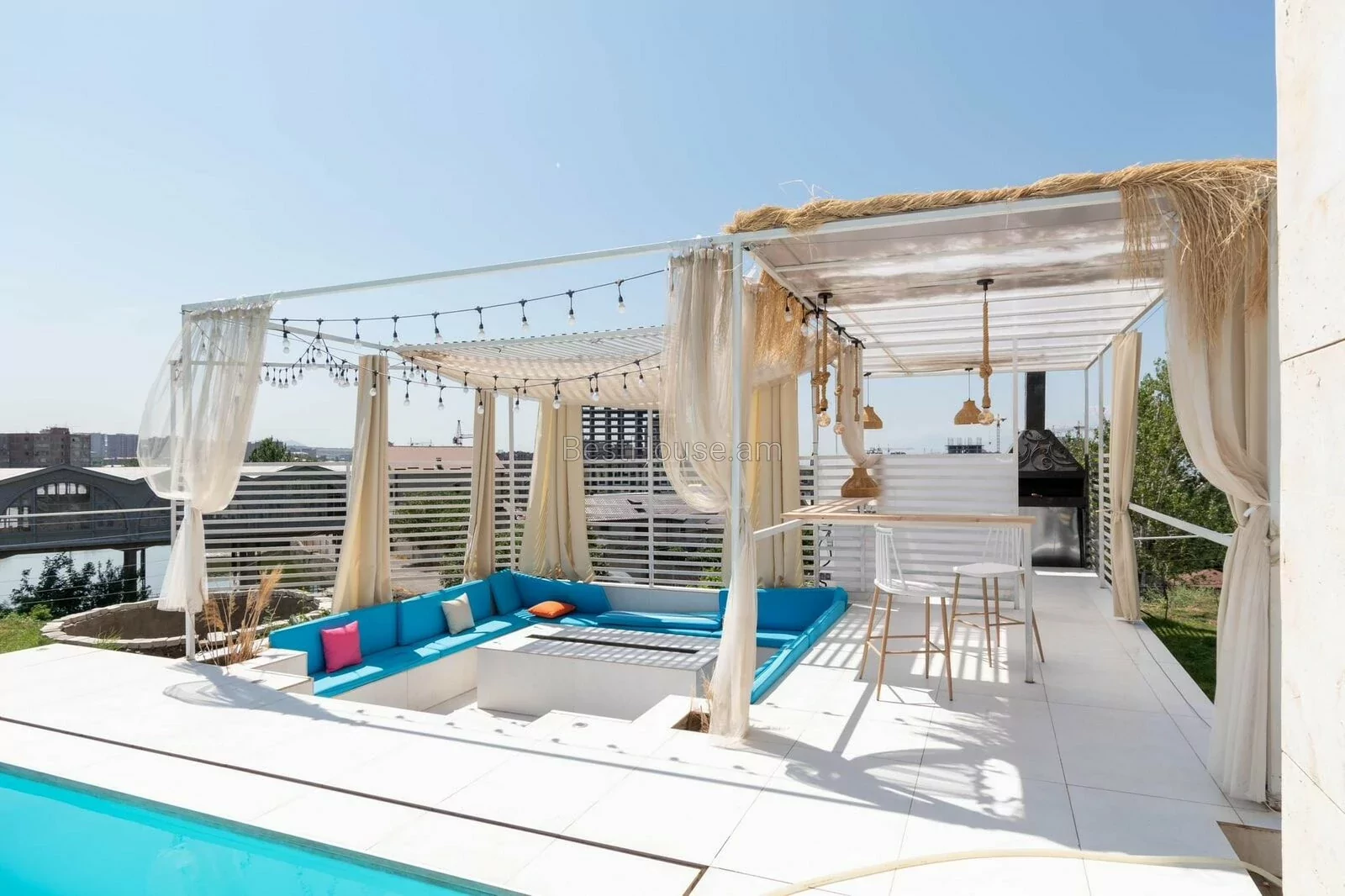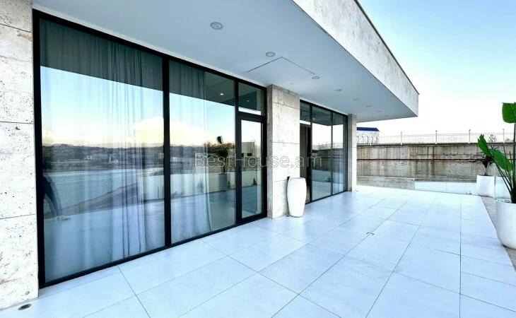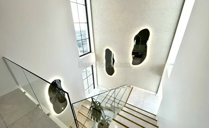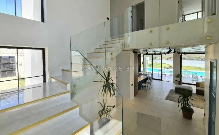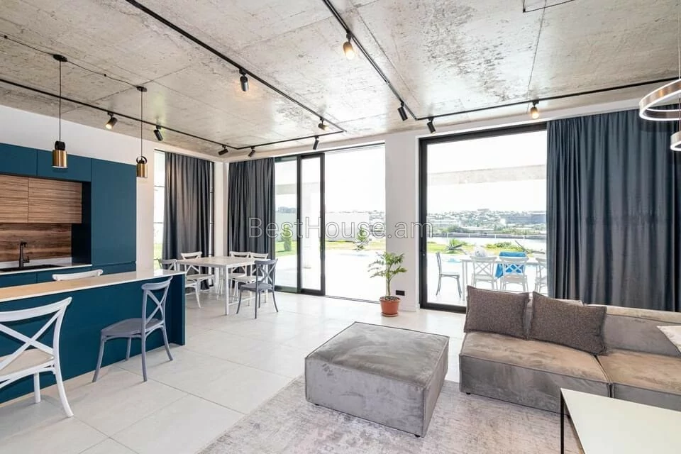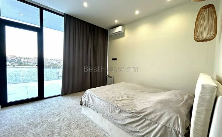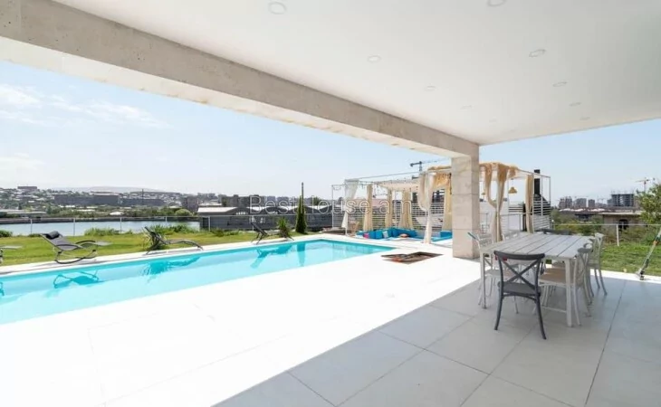The mansion is newly built. During the renovation, only high-quality construction materials were used, special attention was paid to the lighting of the area. The house has open balconies with a beautiful view, panoramic windows and stained glass windows are installed, the floor is covered with high-quality laminate and tiles. The bathrooms are tiled with European-made tiles, equipped with high-quality sanitary ware. The mansion has a large infinity pool, spacious pavilions with beautiful lighting, a green garden, a cozy courtyard. Balconies are completely covered with stained glass. A view opens to Mount Ararat, a large green area, a beautiful view of the lake, a summer kitchen, a fire place in the garden, 4 bedrooms, 4 bathrooms, a fireplace, etc. It is also available on a daily basis.