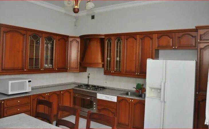 A 3-story house is for rent on Keru Street. On the first floor there is a spacious lobby, 1 bathroom, a kitchen equipped with high-quality furniture and appliances, a beautiful living room, and a parking space for 2 cars.