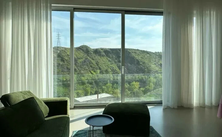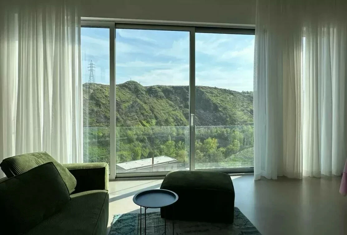 The house is located on Aygedzor Street, from where a wonderful view of the Hrazdan Gorge opens. It has 2 internal courtyards with a total area of 115 square meters. The residential area is 230 square meters, which includes a living room with a kitchen, a laundry room, 3 bathrooms, and 4 bedrooms, a boiler room - pantry. All rooms on the first floor have exits to the internal courtyard. The ceiling height of the living room is 3.9 m and that of the bedrooms is 3 m. The house is gasified.