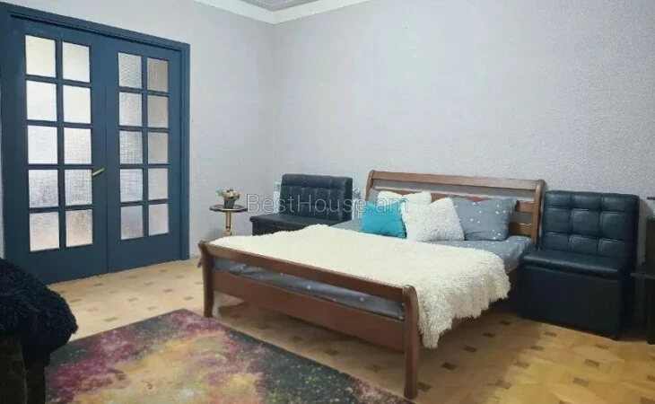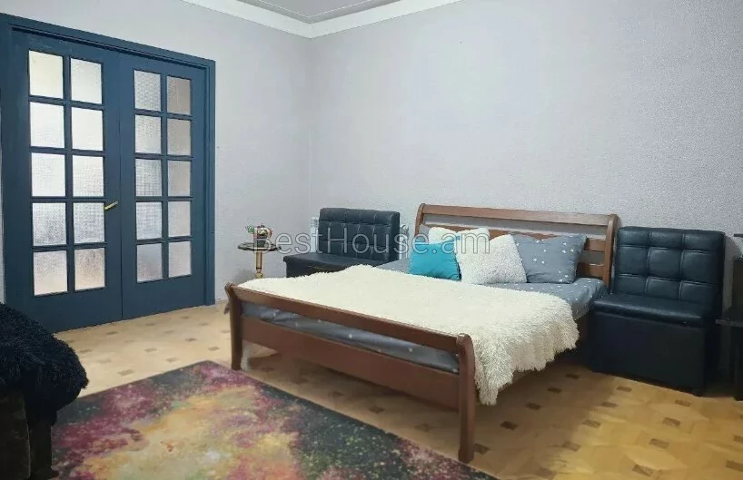 A detached house for rent in the center of Yerevan. One-story stone house on Myasnikyan Avenue in the center, 130 square meters, 2 bathrooms, cosmetic renovation.
