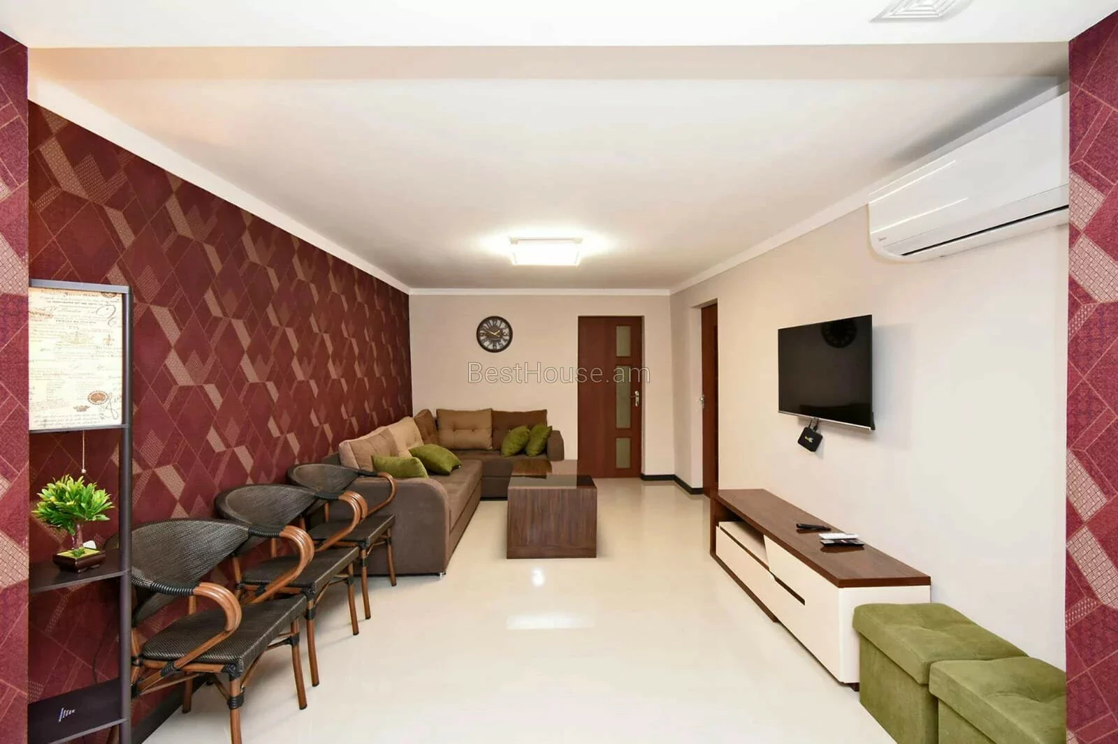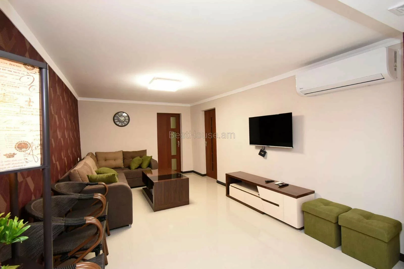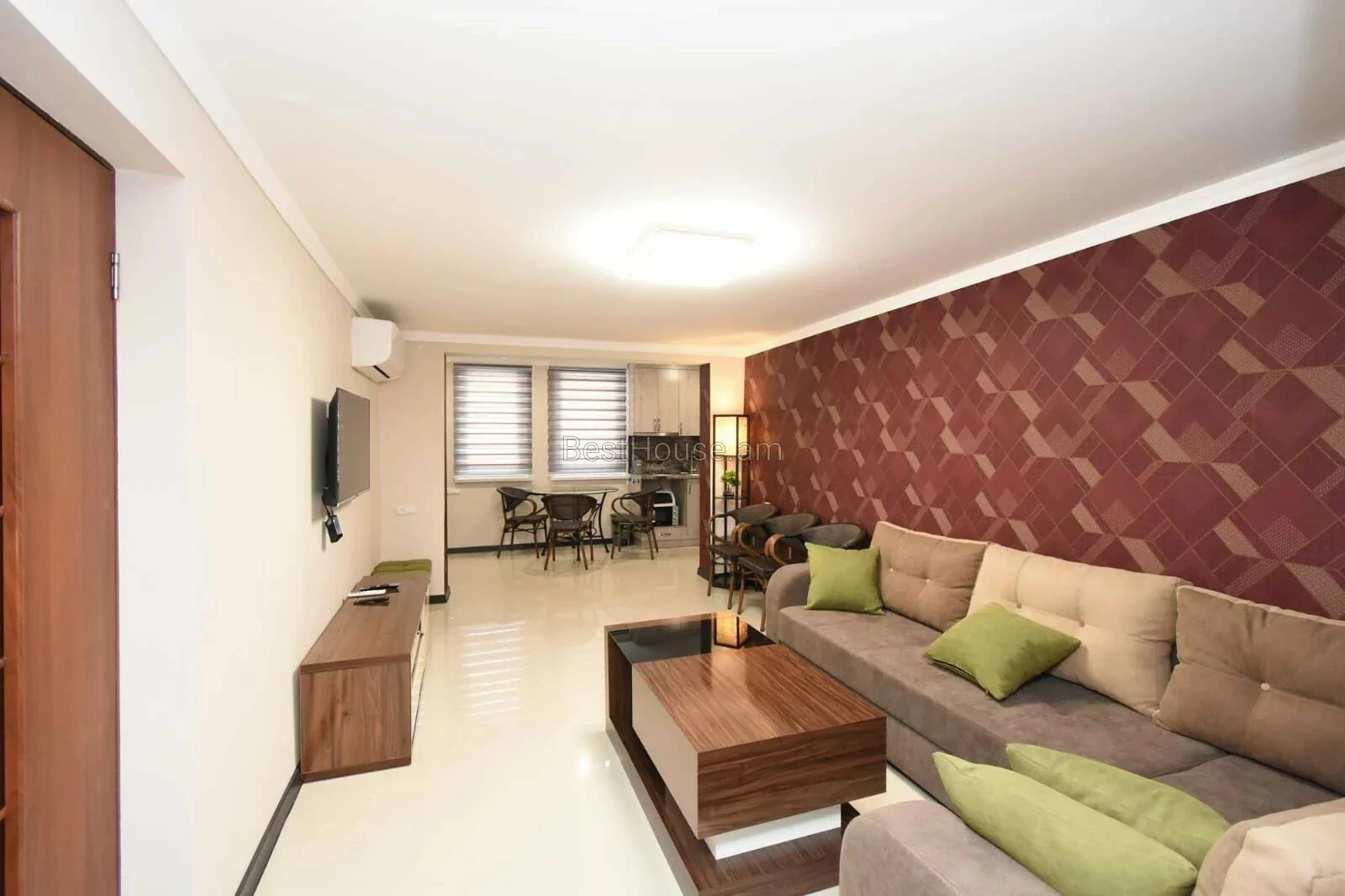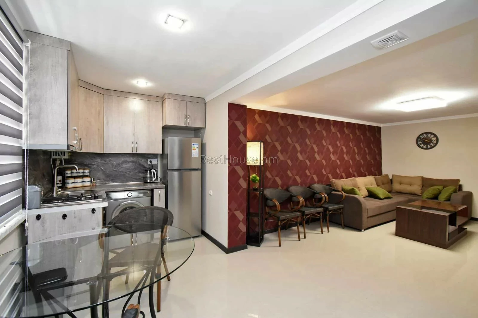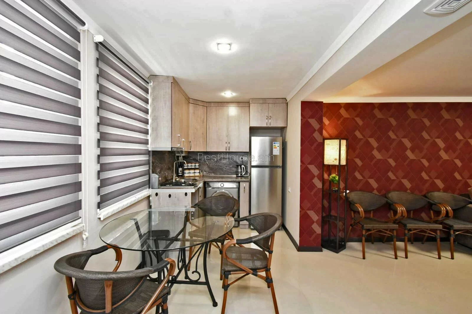 A 3-room designer-style house with its own furniture and appliances is for rent on Vernin Antaryan Street.