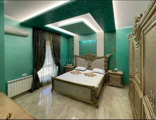A three-story house is for rent in Malatia-Sebastia. Designer renovation with excellent solutions and excellent comfort. 5 bathrooms and a toilet. Spacious kitchen and living room. There are air conditioners and refrigerators in all rooms. Heated floors and classic heating (a separate boiler is provided for each floor). 4 parking spaces. It is rented with all furniture and appliances.