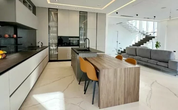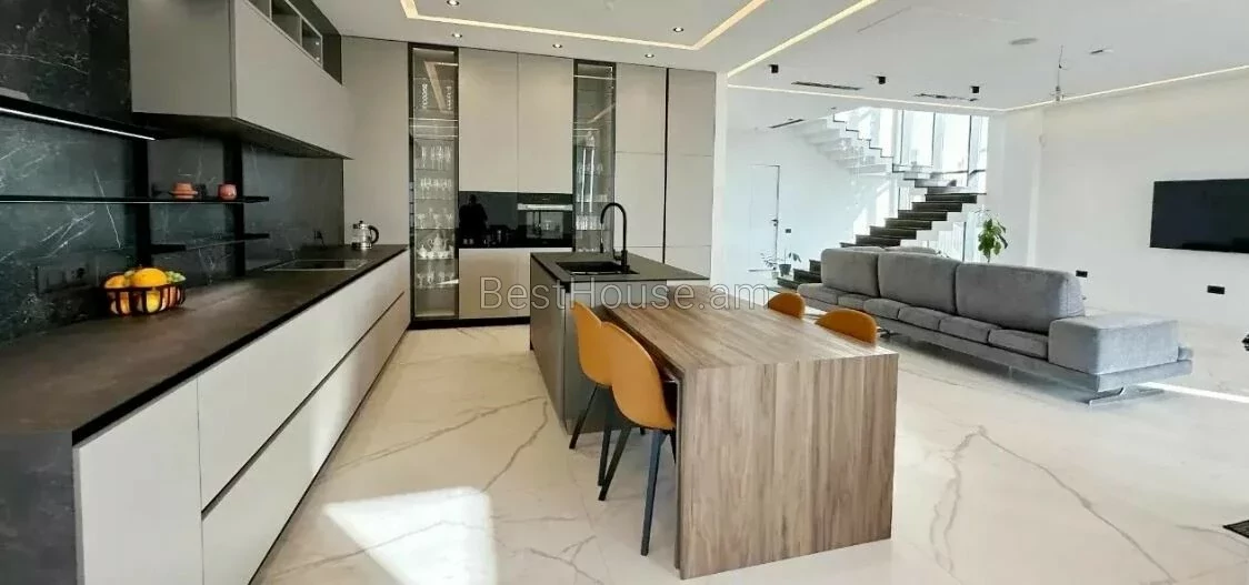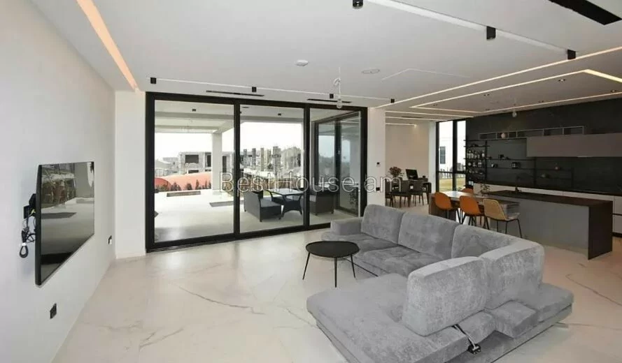 In the Vahagni district of Ajapnyak community, a luxurious three-story private house is for sale or rent, built and renovated with designer solutions.
