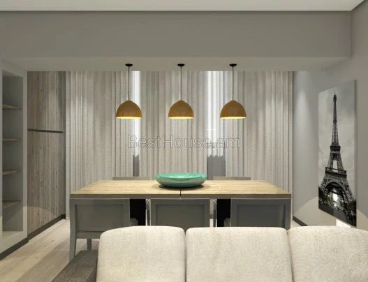 A 3-room designer-style renovated apartment is for rent on Amiryan street. The apartment is equipped with the necessary property and equipment;