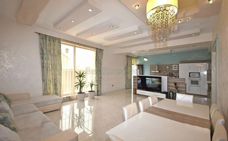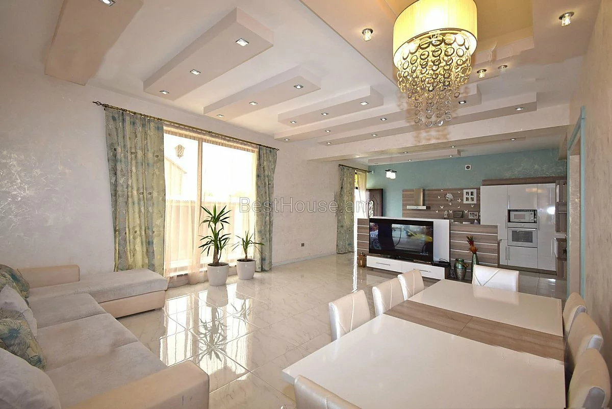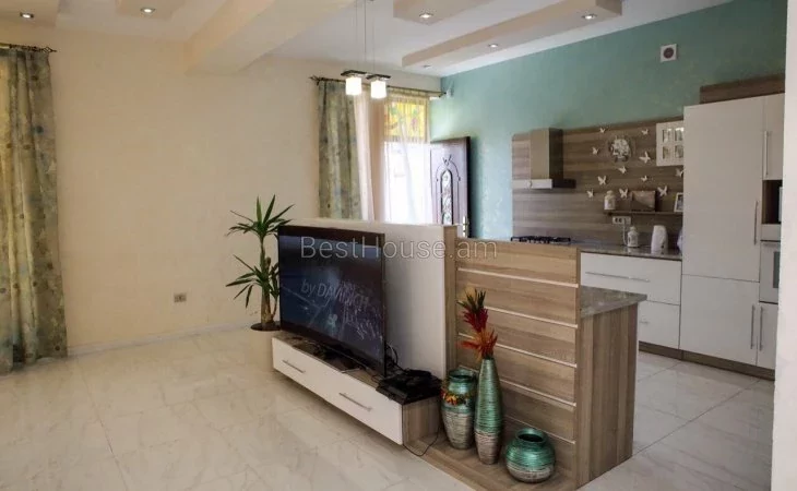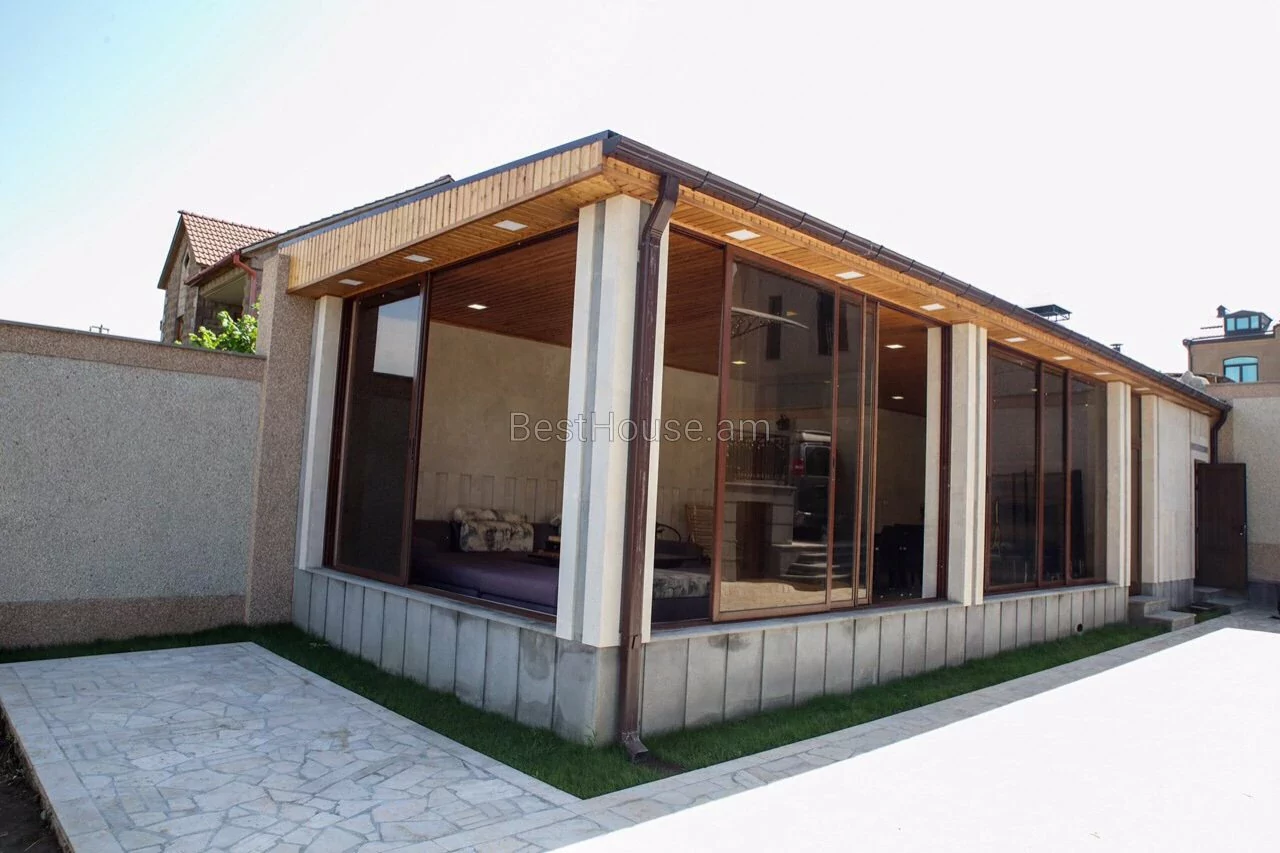 Գ-1 թաղամասում վաճառվում է 4 հարկանի` 2 հարկ բնակելի , մանսարդով և կիսանկուղային հարկով նորակառույց գեղեցիկ առանձնատուն: Ամբողջությամբ վերանորոգված է թանկարժեք պարագաներով, մոդեռն և դասական ոճերի նրբաճաշակ ու ներդաշնակ համադրությամբ։ Շինության մակերեսը՝ 450 քմ, իսկ հողատարածքի մակերեսը՝ 800 քմ. է: Առաջին` կիսանկուղային հարկում, գտնվում է ավտոտնակը( նախատեսված 2 մեքենայի համար), 80ք.մ. մալերեսով կինո դիտումների և ժամանցի համար սրահ և խոհանոց: 2-րդ հարկում ընդարձակ և գեղեցիկ ստուդիո ոճի խոհանոցն է և հյուրասենյակը, 1 ննջասենյակ և սանհանգույց: 3-րդ հարկում` 3 ննջասենյակ, որից 1-ն ունի իր անհատական լոգասենյակը և և բաց պատշգամբ: 4-րդ հարկը` մանսարդային հարկ է: Սանհանգույցները սալիկապատված են որակյալ սալիկներով և հագեցած են սանտեխնիկայով: Հատակը ծածկված է պրեսգրանիտով և տաքացվող է: Առանձնատունը կահավորված է նորաոճ կահույքով: Ունի առանձին ամառային խոհանոց և կանաչապատ գեղեցիկ բակ: Առանձնատունը պարսպապատ է, տեղադրված է անվտանգության համակարգ և տեսախցիկներ։ Վաճառքը հնարավոր է կահույքի և տեխնիկայի հետ միասին։
