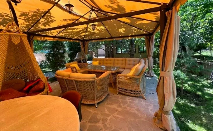 Աջափնյակ համայնքում Լուկաշին փողոցում վաճառվում է գեղեցիկ շինությամբ խիտ կանաչապատ հողատարածքով 4 հարկանի առանձնատուն, որից 1 հարկը կիսանկուղային է: Շինության մակերեսը 500 քմ է, հողատարածքը` 1800 քմ: Առանձնատունն ունի բարձրորակ վերանորոգում, ապահովված է բոլոր անհրաժեշտ պայմաններով, ունի ջեռուցման (կաթսայատուն) համակարգ, առկա են օդորակիչներ: Տեղադրված են եվրո պատուհաններ, հատակը երեսպատված է` 1-ին հարկը լամինատով և քարով, 2-րդ հարկը` լամինատով: Բոլոր սենյակները կահավորված են գեղեցիկ ու բարձրորակ կահավորանքով, ապահովված են կենցաղային տեխնիկայով: Սանհանգույցները սալիկապատված են և հագեցած են սանտեխնիկայով, տեղադրված է լոգախցիկ և ջակուզի: Բաղկացած է 3 հյուրասենյակից, 2 խոհանոցից, 5 ննջասենյակից, զգեստասենյակից, խորդանոցից, 4 սանհանգույցից և բաց պատշգամբներից: Առանձնատանը կից կա հյուրատուն` 60 քմ մակերեսով, որն ունի հյուրասենյակ, խոհանոց, 2 ննջարան և 1 սանհանգույց: Բաց պատշգամբերից բացվում են գեղեցիկ տեսարաններ դեպի այգի: Ամբողջն ապահովված է կահավորանքով և անհրաժեշտ կենցաղային տեխնիկայով: Տունն ունի կոկիկ խնամված կանաչապատ բակ` պտղատու և դեկորատիվ ծառերով, հանգստի և ժամանցի համար ապահովված են լավագույն պայմանները, ունի բացօթյա լողավազան, ամառային զրուցարան` բուխարիով և թոնրով: Առկա է ավտոկայանատեղի: Առանձնատունն ապահովված է անվտանգության համակարգով, դարպասները հեռակառավարվող են: