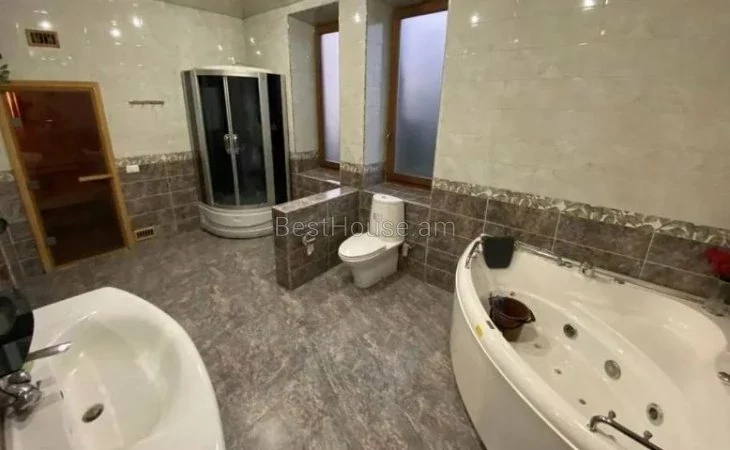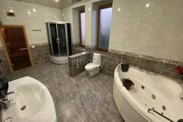 1- ին հարկում առկա է ՝ 1 ննջասենյակ, 2 հյուրասենյակ, 1 խոհանոց, 1 սանհանգույց, ջակուզի, սաունա, լվացքասենյակ: