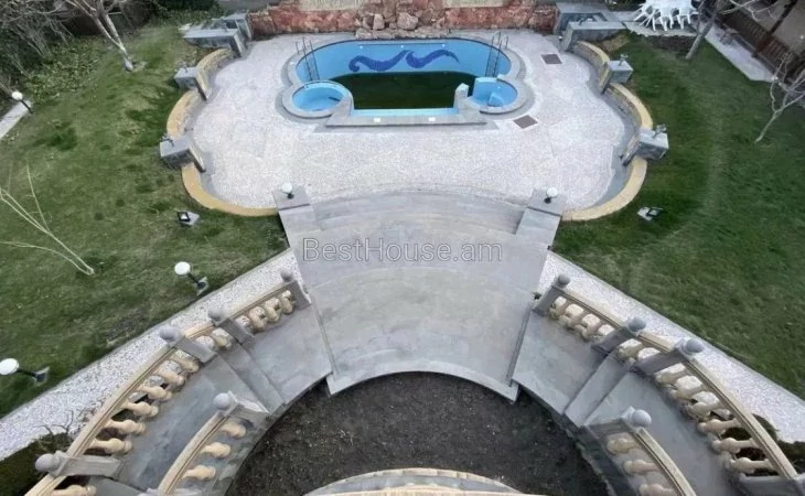 Առանձնատան բակը ևս շատ բարեկարգ է և գեղեցիկ՝ զրուցարան՝ իր մանղալով, կանաչապատ այգի՝ իր պտղատու և դեկորատիվ ծառերով ողջ տարածքը պարսպապատ է, տեղադրված է հակահրդեհային և անվտանգության համակարգ` Տեսահսկմամբ: