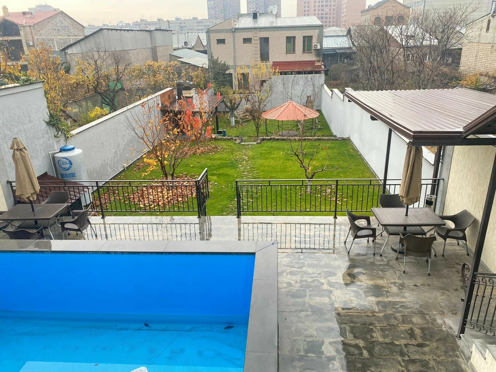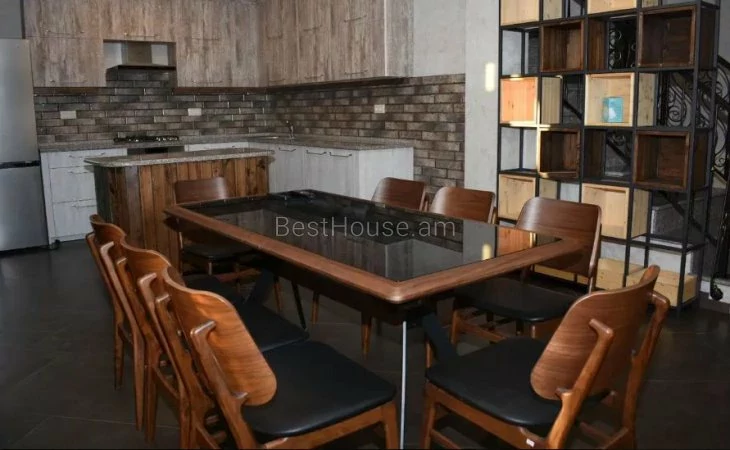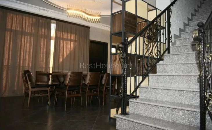 Վաճառվում է 6 սենյականոց երկհարկանի առանձնատուն Կենտրոնում ։ Առանձնատունն ունի 2 մուտք, մշակված հողատարածք (որտեղ կա մանղալ, թոնիր, տաղավար), լողավազան, ավտոտնակ, կիսանկուղ։ Առաջին հարկում կա մեծ խոհանոց, լվացքասենյակ և 3 ննջարան Երկրորդ հարկում կա մեծ հյուրասենյակ և 2 ննջարան։ Բոլոր ննջարաններում կա լոգարան։ Սենյակներն ու խոհանոցը ունեն պատշգամբներ։
