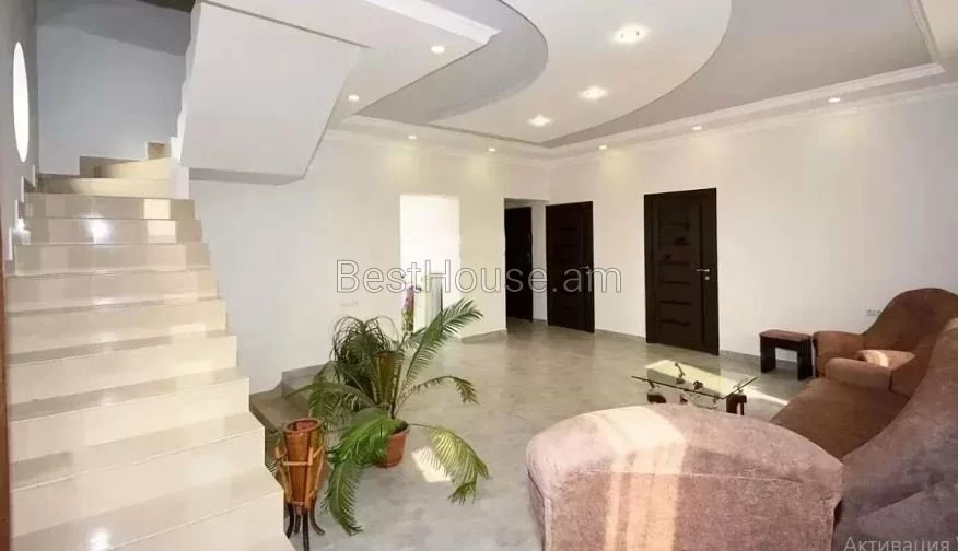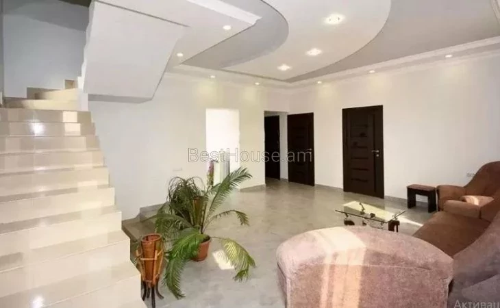 Վարձով է տրվում 8 սենյականոց նորակառույց առանձնատուն՝ կոմունալ բոլոր հարմարություններով, գույքով, տեխնիկայով։ Հագեցած է անհրաժեշտ ամեն ինչով։ Տունը եռահարկ է, յուրաքանչյուր հարկ 110 քմ, յուրաքանչյուր հարկում առկա է սանհանգույց, ննջասենյակ, առաջին հարկում՝խոհանոց, մեծ հյուրասենյակ, մուտքը դեպի նկուղ առաջին հարկից է, նկուղը 56 քմ, օգտագործվում է որպես լվացքատուն, առաջին հատակի հատակը տաքացվող է, գերխնայող կաթսա, սպասք լվացող մեքենա, երկրորդ և երրորդ հարկերում առկա է սանհանգույցներ և ննջասենյակներ, ողջ տունը կապիտալ վերանորոգված, պարսպապատ է։