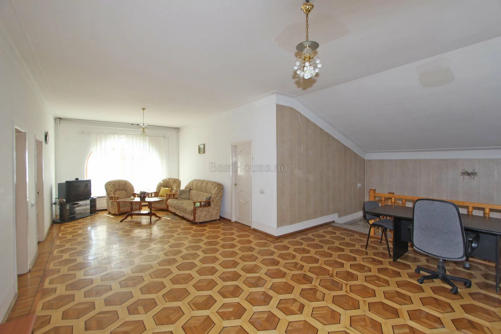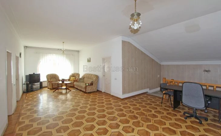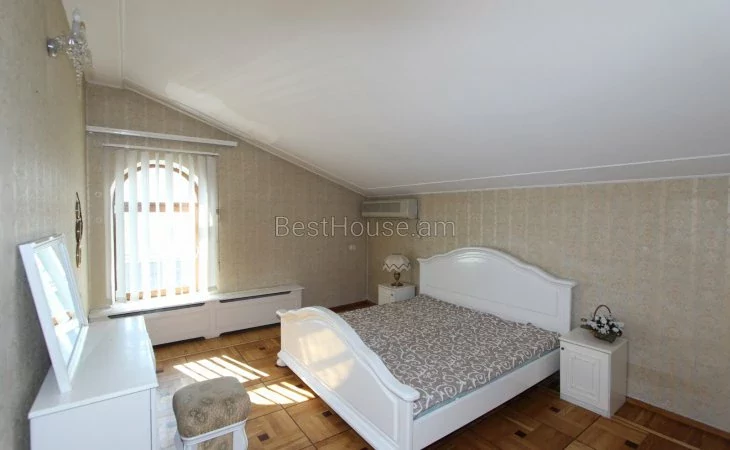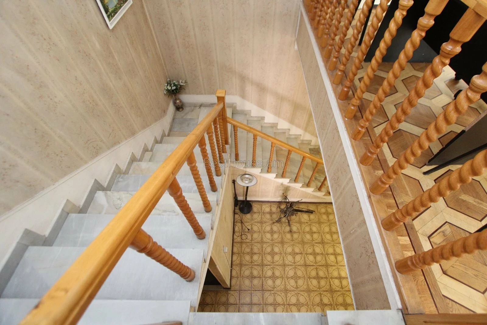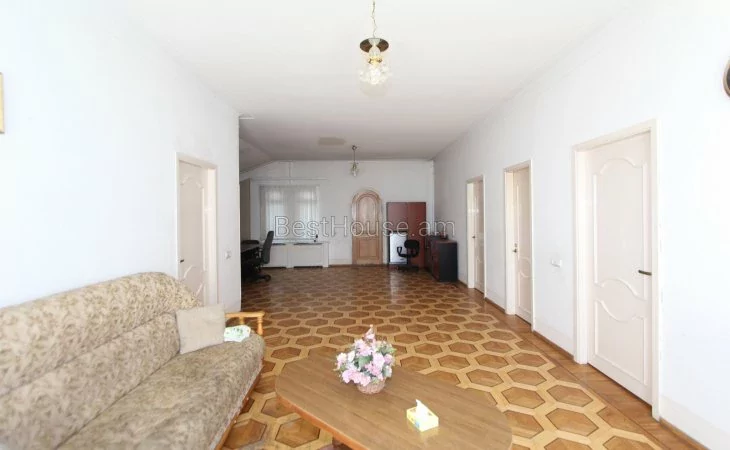 Վաճառվում է 3 հարկանի առանձնատուն 600 քմ հողատարածքով և 330 քմ բնակելի տարածքով։ Առանձնատունը հին կապիտալ վերանորոգված է։ 1-ին՝ կիսանկուղային հարկում՝ նախասրահ, հանգստի սենյակ, սանհանգույց: 2-րդ հարկում՝ նախասրահ, ընդարձակ և լուսավոր հյուրասենյակ, աշխատասենյակ, խոհանոց, սանհանգույց։ 3-րդ հարկում՝ նախասրահ, 3 ննջարան, սանհանգույց,2 բաց ընդարձակ պատշգամբ։ Առանձնատունն ունի 2 ավտոտնակ՝ 120 քմ մակերեսով, նախատեսված 4 ավտոմեքենայի համար, անհատական ջեռուցման համակարգ, տեղադրված է օդորակիչներ։Ունի նաև 2 ավտոտնակ: