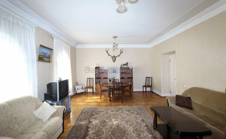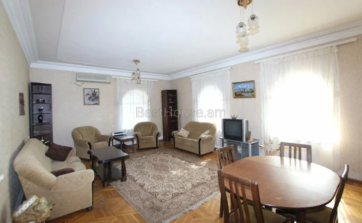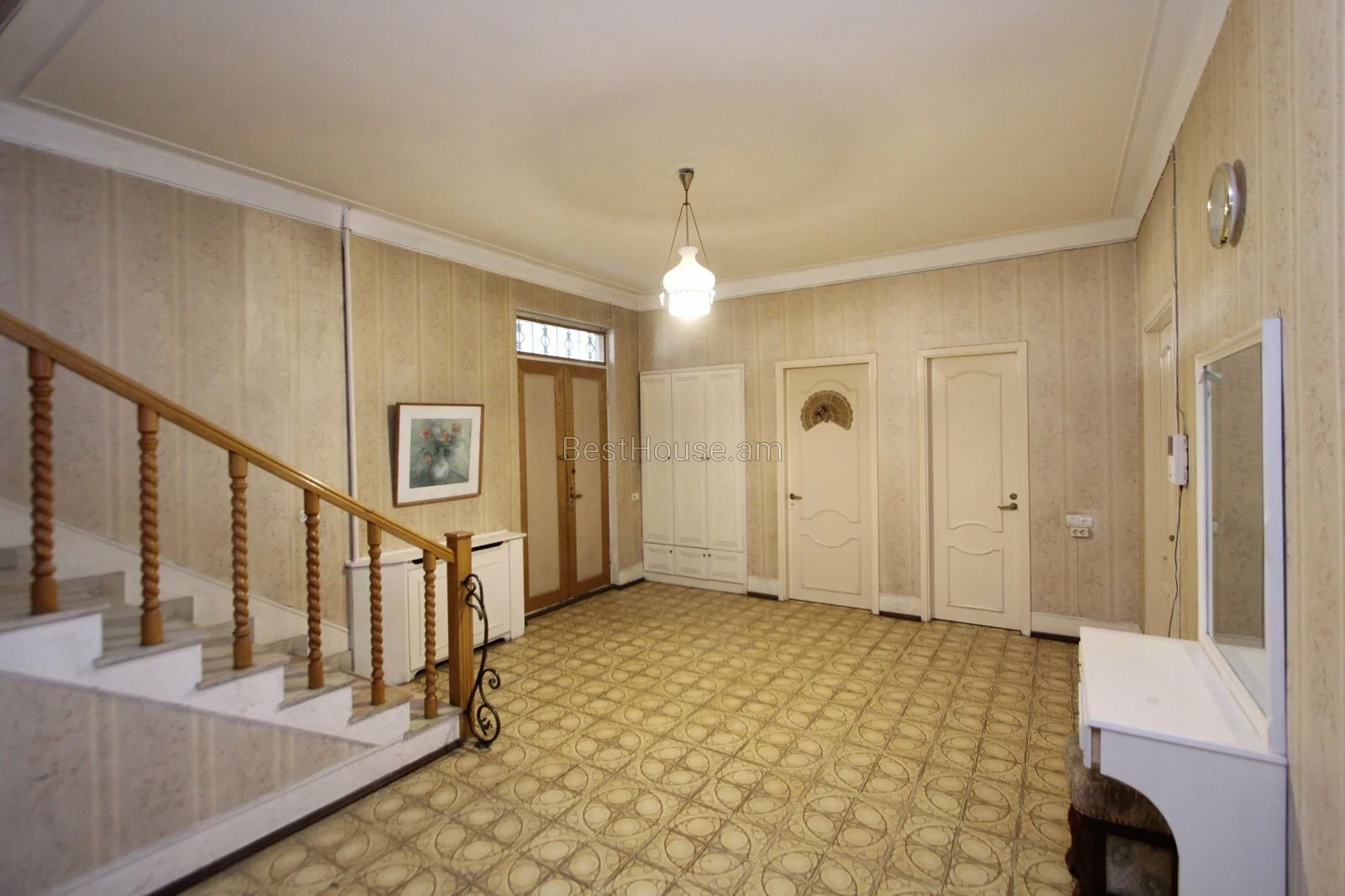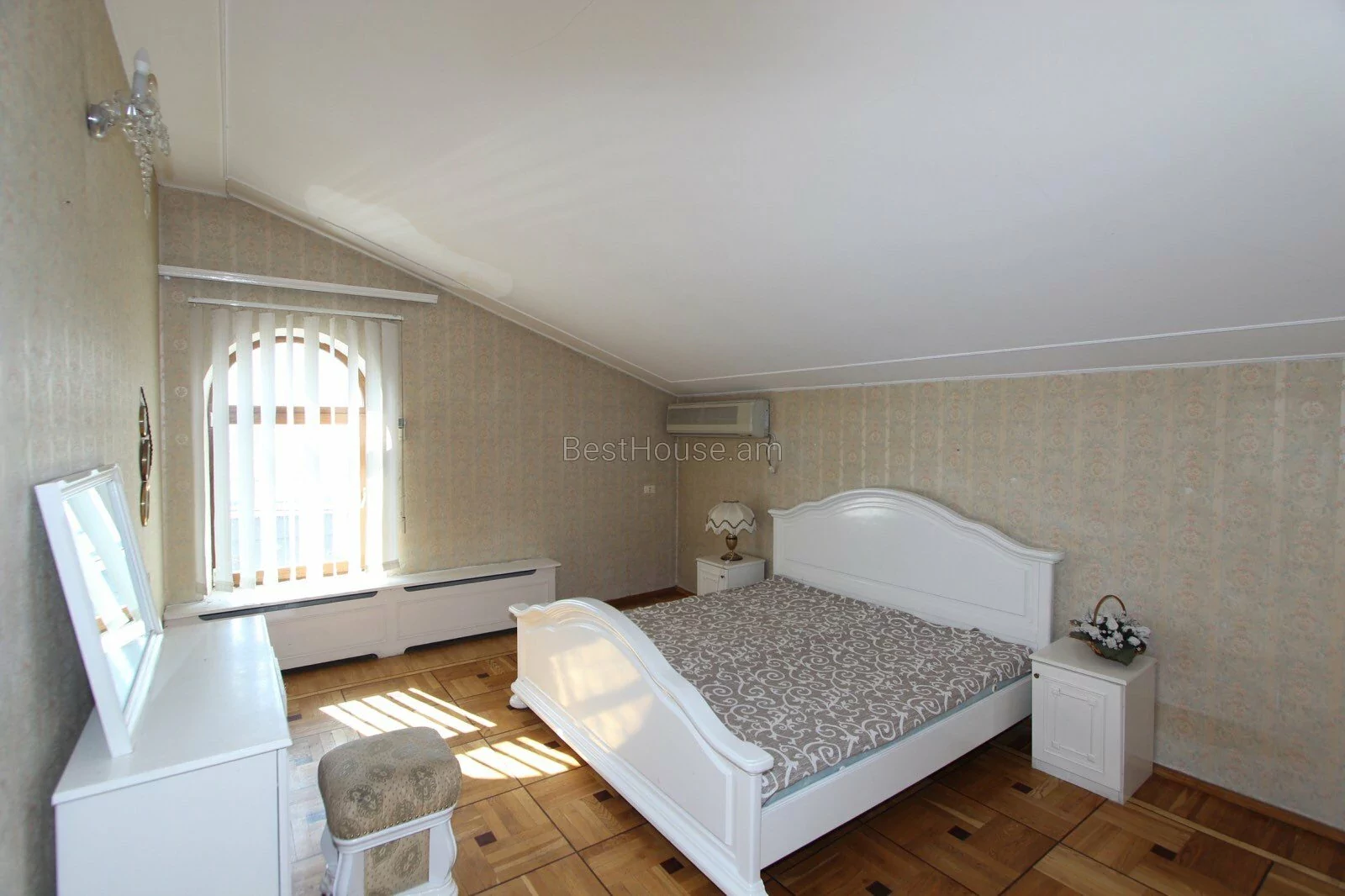 Վաճառվում է 3 հարկանի առանձնատուն 600 քմ հողատարածքով և 330 քմ բնակելի տարածքով։ Առանձնատունը հին կապիտալ վերանորոգված է։ 1-ին՝ կիսանկուղային հարկում՝ նախասրահ, հանգստի սենյակ, սանհանգույց: 2-րդ հարկում՝ նախասրահ, ընդարձակ և լուսավոր հյուրասենյակ, աշխատասենյակ, խոհանոց, սանհանգույց։ 3-րդ հարկում՝ նախասրահ, 3 ննջարան, սանհանգույց,2 բաց ընդարձակ պատշգամբ։ Առանձնատունն ունի 2 ավտոտնակ՝ 120 քմ մակերեսով, նախատեսված 4 ավտոմեքենայի համար, անհատական ջեռուցման համակարգ, տեղադրված է օդորակիչներ։Ունի նաև 2 ավտոտնակ: