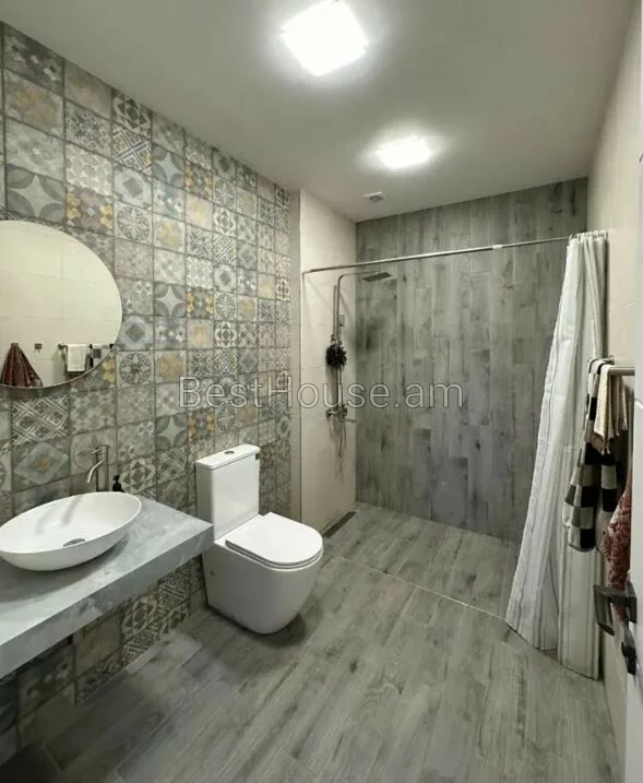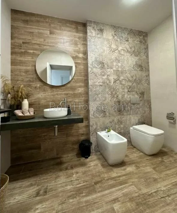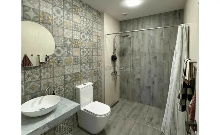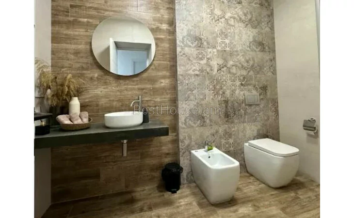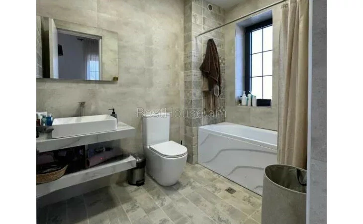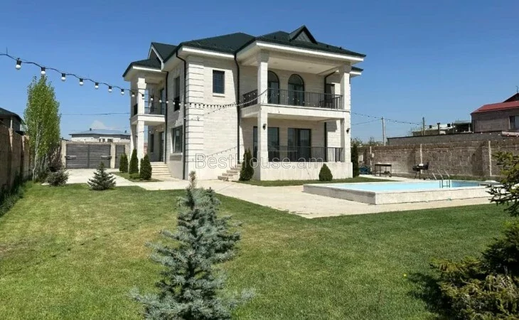 լողավազան /3.2x8մ/ ջուրը ֆիլտրելու համար նախատեսված բարձրակարգ սարքավորումներով, պատուհանները թերմոալյումինե,ջեռուցման Viessmann համակարգ,տաքացվող հատակ,առաստաղները 3մ։Առանձնատան արտաքին պատերը ամբողջությամբ երեսպատված է տրավերտին քարով,բակային հատվածում առկա է ոռոգման ավտոմատ համակարգ,բազմաթիվ մրգատու և դեկորատիվ ծառեր։