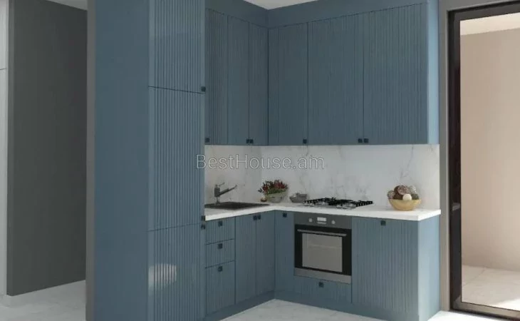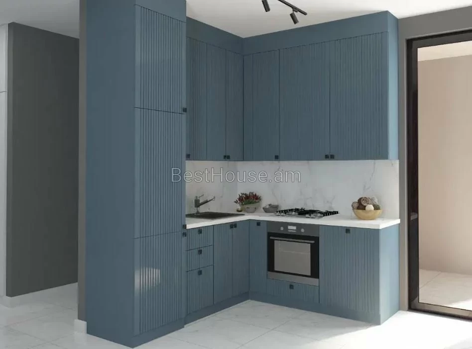 Խոհանոցի եւ ներկառուցվող հատվածների կահույքը պատրաստման փուլում է։ (նկարում render-ն է, գույնը պատերին համապատասխան է),