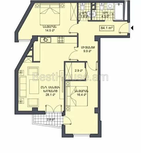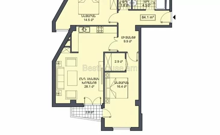 Վաճառվում են բնակարաններ նորaակառույ շենքում. 81 քմ.