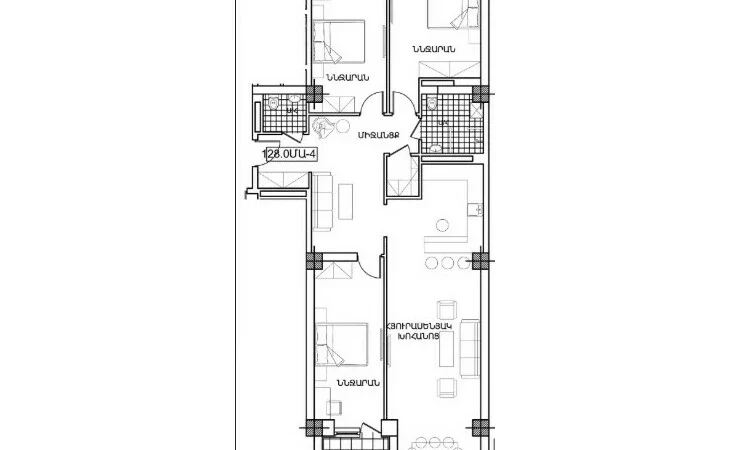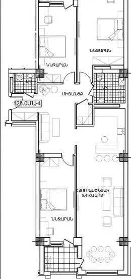 • 54 քմ 2 սենյականոց (վիտրաժային հյուրասենյակ, ննջասենյակ, պատշգամբ)