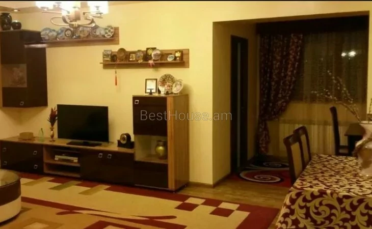 Վաճառվում է ողջ կահույքի և տեխնիկայի հետ միասին։ Մոսկովյան նախագիծ` 3 սենյակը 4 դարձրած։ Հատակի սալիկապատ հատվածը տաքացվոևղ է (խոհանոց, շքամուտք և միջանցք), սենյակների հատակը բարձրորակ լամինապտ։ Ներսի դռները, ջրի խողովակները և էլ. Հոսանքի մալուխները փոխված են։ Մուտքի դուռը երկաթյա։ Գազաֆիկացված է և ապահովված է մշտական տաք և սառը ջրով։
