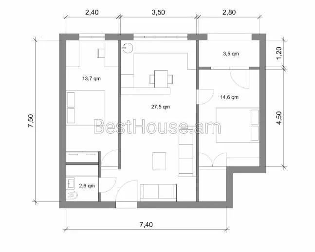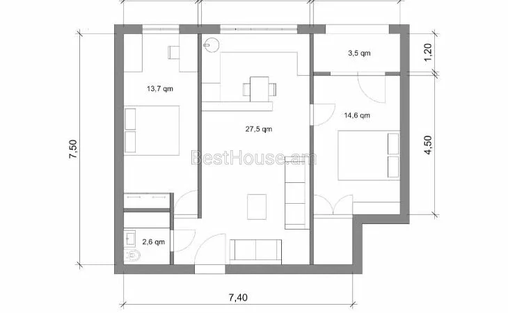 3 Սենյականոց բնակարան, Պուշկինի փող, Կենտրոն (Երևան)