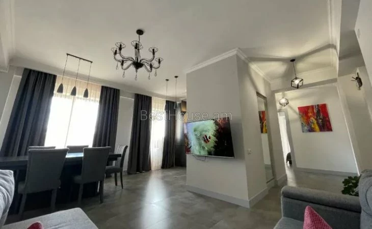 Վաճառվում է 3 սենյականոց բնակարան՝ նորակառույց շենքում։ Առասատղի բարձրությունը՝ 3 մետր: Կապիտալ վերանորոգված է որակյալ նյութերով, ամբողջովին կահավորված է, և համալրված բարձրակարգ տեխնիկայով և ՉԲՆԱԿԵՑՎԱԾ: Բաղկացած է՝ հյուրասենյակ խոհանոց 2 ննջասենյակ 2 սանհանգույց նախասրահ բաց պատշգամբ, գեղեցիկ տեսարանով դեպի Մասիս սարը։ Համալիրն ունի` ստորգետնյա ավտոկայանատեղի անհատական կաթսայատուն հանգստի գոտիներ հեծանվուղի խաղահրապարակներ շուրջօրյա անվտանգություն տարածքի մաքրության ծառայություն։ Շենքի և տարածքի սպասարկման վճարը կազմում է 1քմ-ի համար 250 ՀՀ դրամ: Շենքի հիմքի վրա տեղադրված են հատուկ սեյսմակայունությունը ապահովող բարձիկներ: Բնակարանը վաճառվում է կահույքի և տեխնիկայի հետ միասին։