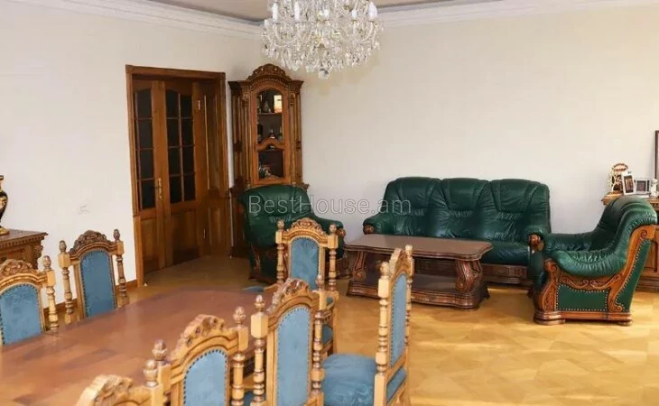5 սենյականոց բնակարան` Ալեք Մանուկյան և Վարդանանց փողոցների խաչմերուկի հատվածում գտնվող նորակառույց շենքում։ • Ունի 3 սանհանգույց՝ մեկում տեղադրված է ջակուզի և լվացքի մեքենա։ Մեկ սանհանգույց–լոգարանը ներառված է ննջասենյակում։ Բոլոր սանհանգույցները սալիկապատված են բարձրորակ սալիկներով՝ հագեցած որակյալ սանտեխնիկայով։ Տեղադրված է մեծ ներժից ջրի բակ, որը ջրի անջատման դեպքում ապահովում է բոլոր սանհանգույցների և խոհանոցի անխափան ջրամատակարումը։ • Դռների և խոհանոցի կահույքը պատրաստված է ընկույզի փայտից։ Կահույքը եվրոպական արտադրության՝ բարձրորակ փայտից։