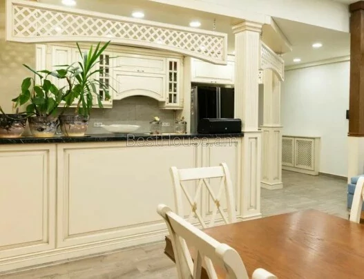 Գեղեցիկ ընդարձակ բնակարան քաղաքի կենտրոնում ՝հատուհ նախագիծ, ապահոված է կոմունալ բոլոր հարմարություններով; Ունի անհատական ջեռուցման համակարգ, 3 սանհանգույց , սալիկապատ հագռցած է անհրաժեշտ սանտեխնիկայով, ունի բաց պատշգամբ, նկուղ 46քմ․
