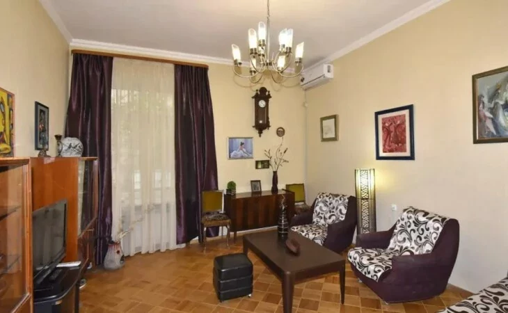 Վաճառվում է 2 սենյականոց բնակարան Վարդանանց փողոցում կենտրոնում, 60 քմ, 2/4 հարկ, բարձր առաստաղներ, առկա է անհրաժեշտ բոլոր կոմունալ հարմարությունները։ Առաստաղի բարձրությունը 3.20մ: Բնակարանը կապիտալ վերանորոգված է, տեղադրված են անհատական ջեռուցման և օդորակման համակարգեր, հատակը ծածկված է բարձրորակ գորգ մանրահատակով և սալիկներով: Բնակարանը կահավորված է և ապահովված կենցաղային տեխնիկայով: Բակը ունի կանաչապատ տարացք, խաղահրապարակ, կայանատեղ: Բակից ուղիղ ելք դեպի Վերնիսաժ և Հանրապետության հրապարակ: Ստալինյան նախագիծ։
