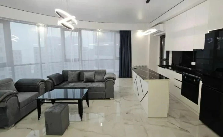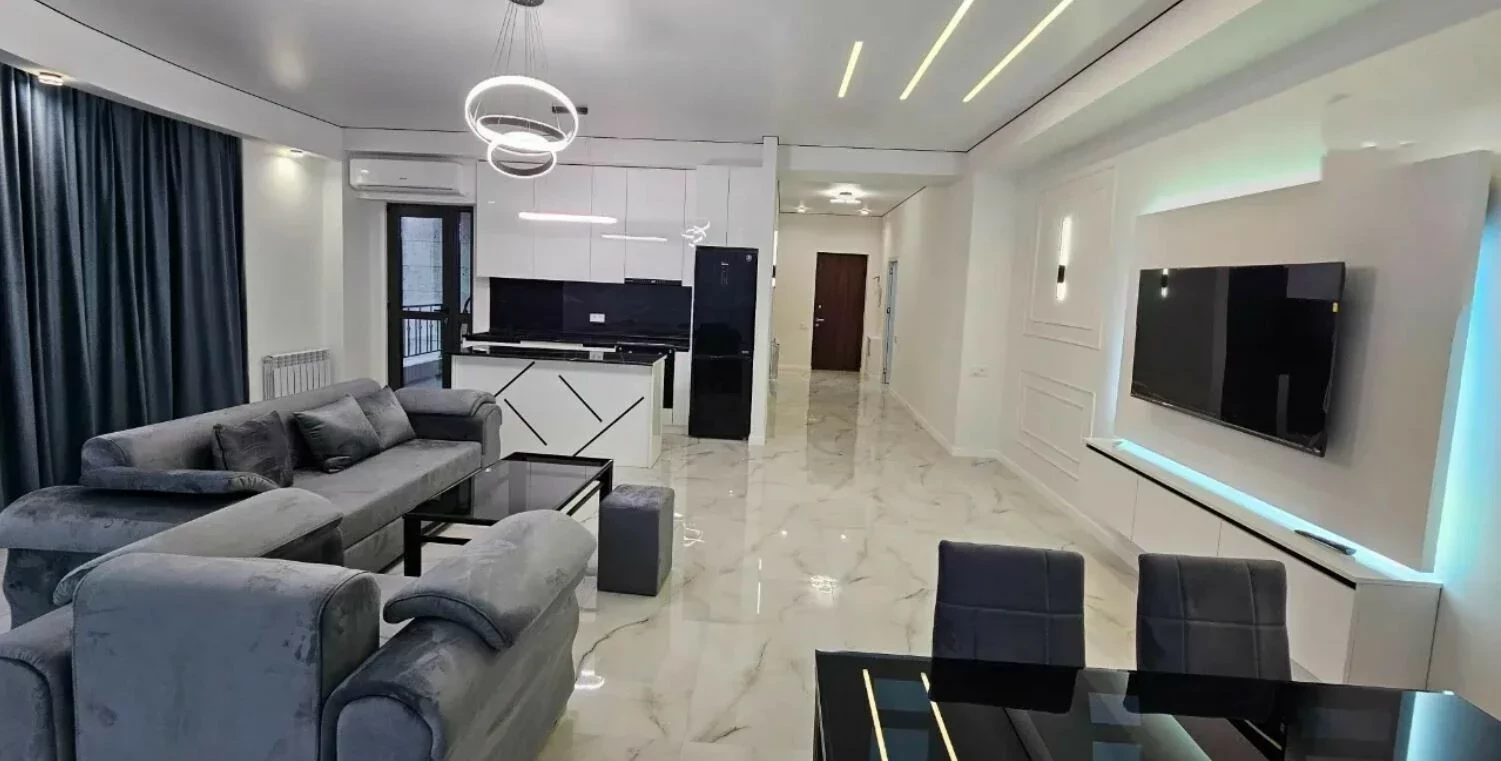 Գույքով և տեխնիկայով 3 սենյականոց բնակարան Բյուրեղ բնակելի համալիրում ։ Վիտրաժային պատուհաններից բացվում է գեղեցիկ տեսարան դեպի առաջին բակ, երկրորդ բակ և Արշակունյաց փողոց։