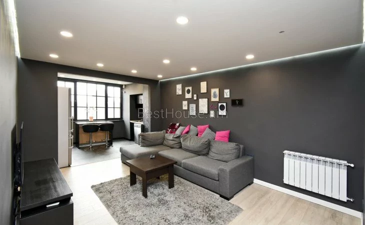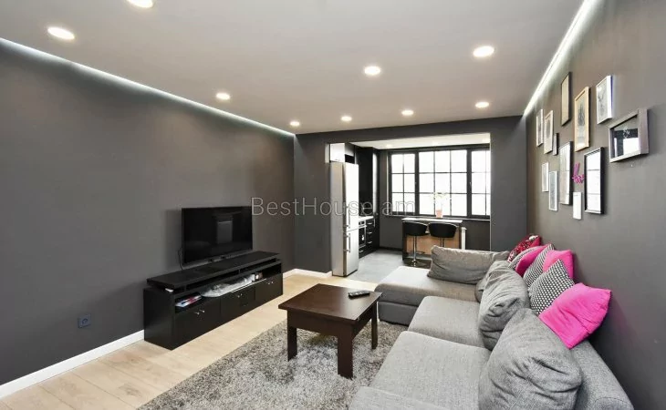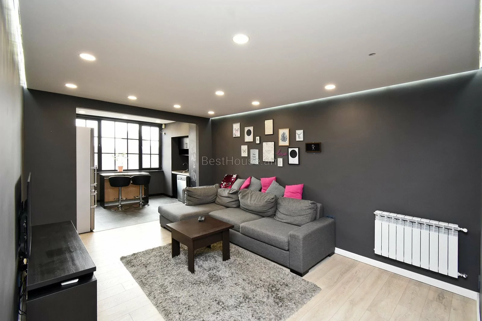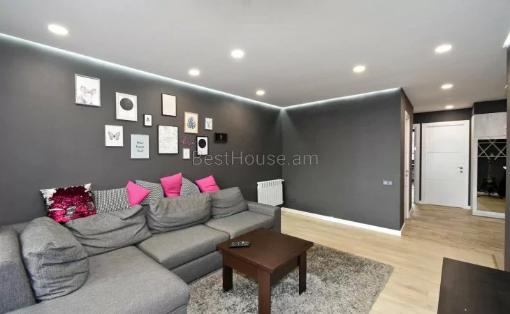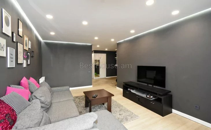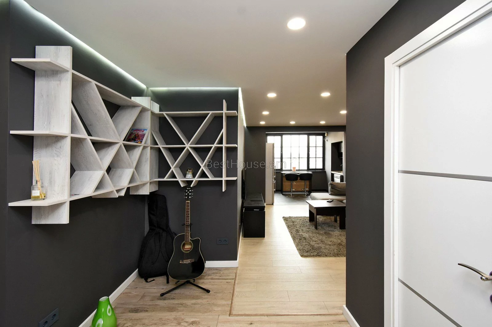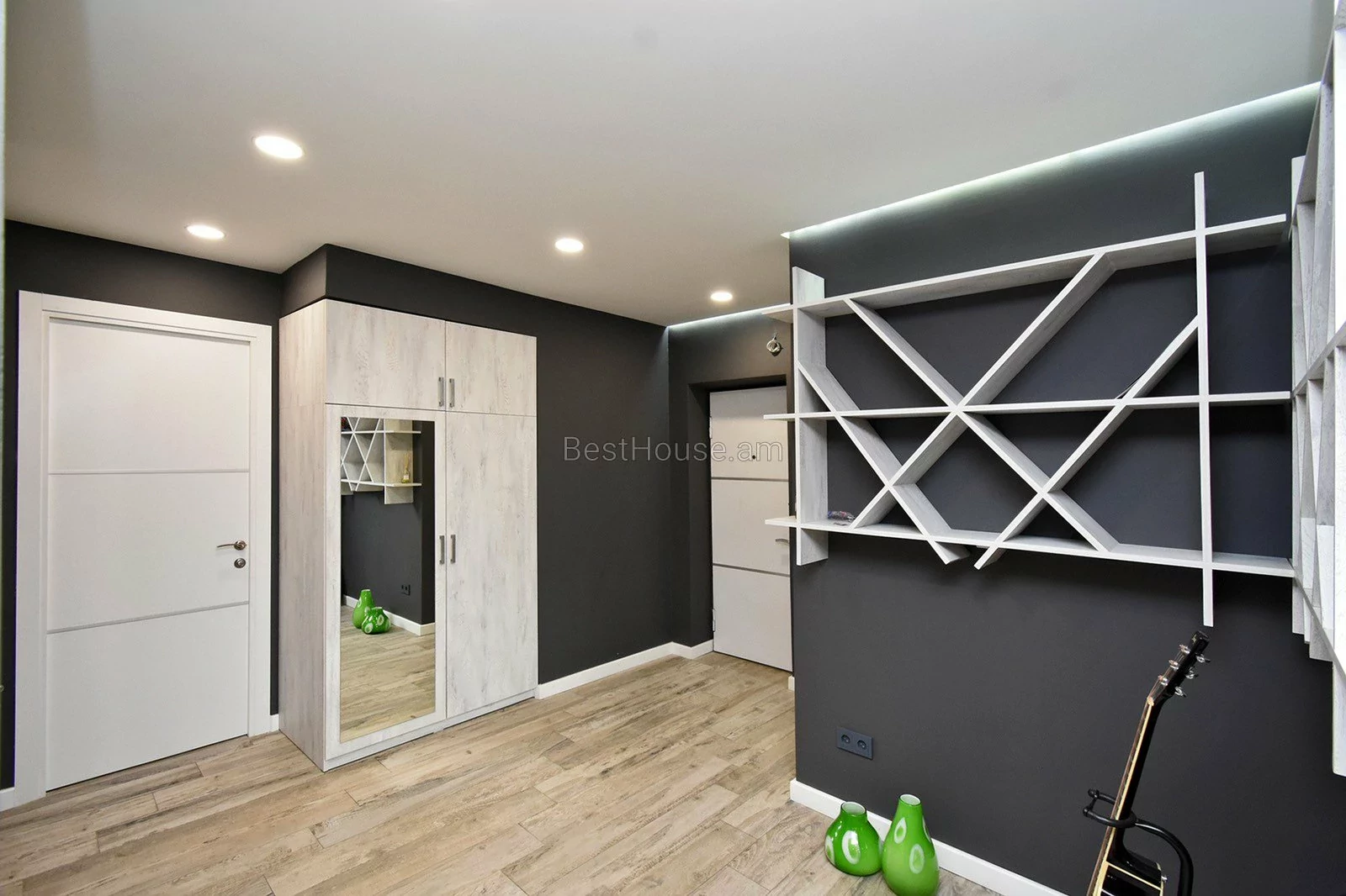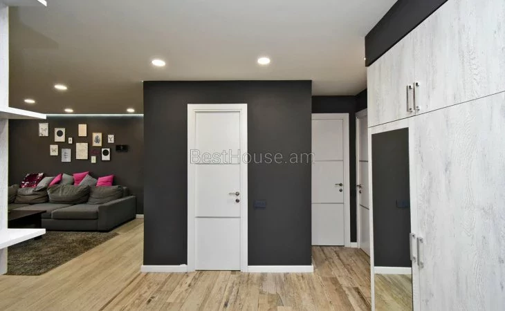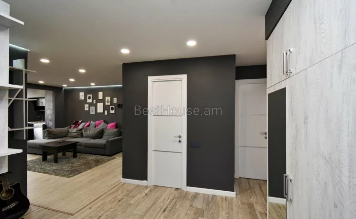 Վաճառվում է 3 սենյականոց նրբաճաշակ դիզայնով ստուդիո ոճի բնակարան՝ 77 ք.մ. մակերեսով, որը գտնվում է Մ.Սարյան փողոցում՝ քաղաքի լավագույն հատվածներից մեկում, 7 հարկանի քարե հատուկ շենքի 7-րդ հարկում: Այն կապիտալ եվրո վերանորոգված է։ Տեղադրված է երկաթե դուռ, եվրո պատուհաններ, հատակը ծածկված է լամինատով: Սանհանգույցը պատված է սալիկներով, հագեցած է սանտեխնիկայով: Բնակարանը ապահովված է ժամանակակից կահույքով և տեխնիկայով։ Մոտակայքում կան բազմաթիվ խանութներ, սրճարաններ և այլ ժամանցի կենտրոններ։