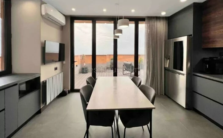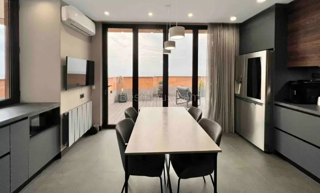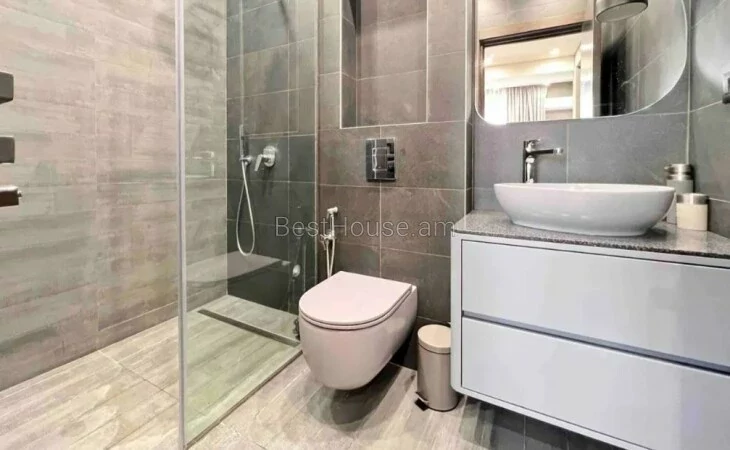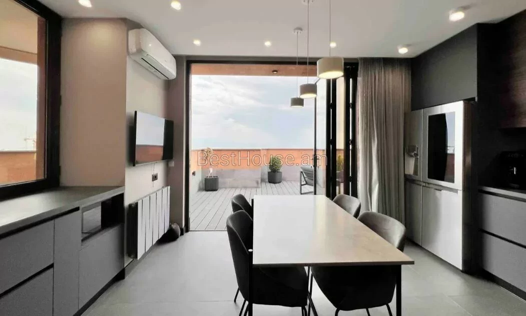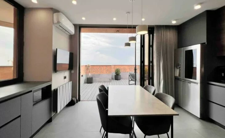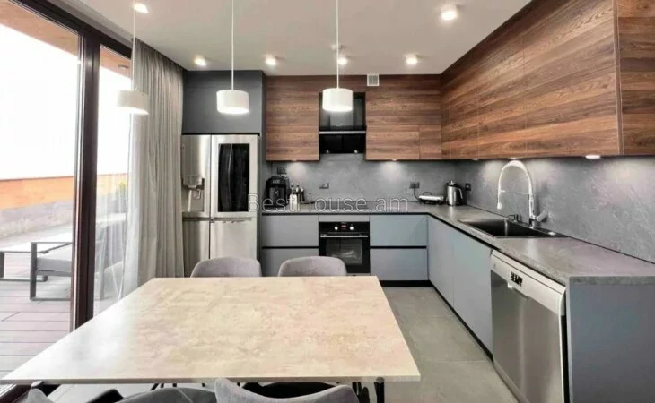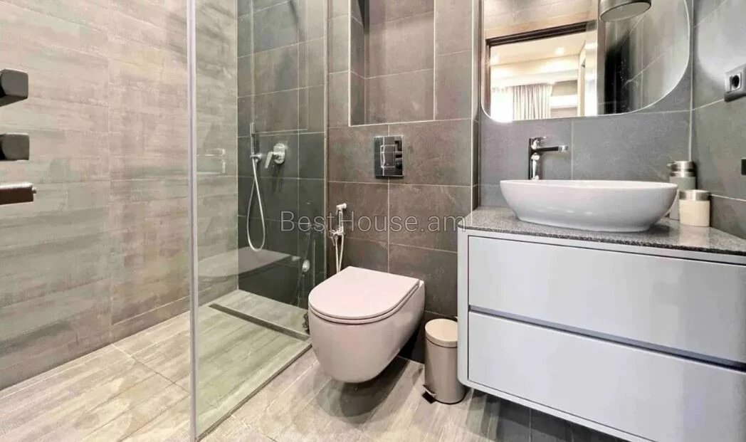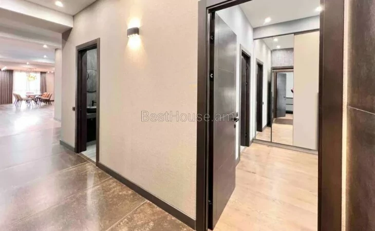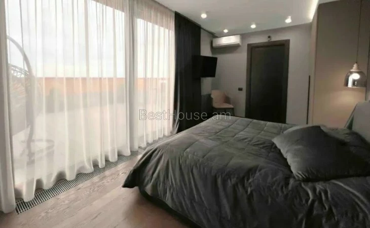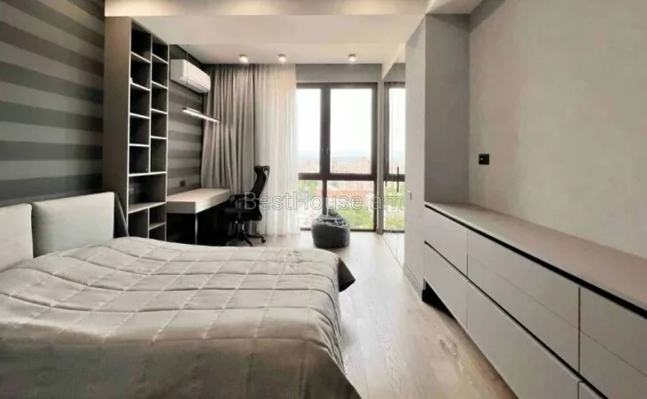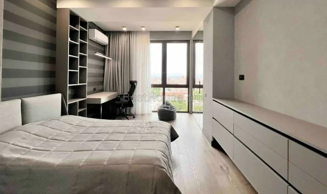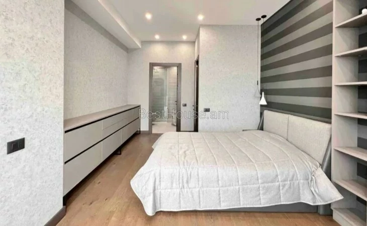 Նորակառույց շենքում վաճառվում է բնակարան՝ հագեցած բարձրակարգ կահույքով, տեխնիկայով: Բնակարանը ապահովված է անվտանգության համակարգով, հակահրդեհային համակարգով, բոլոր սենյակները ապահովված են օդորակիչներով (5 միավոր), առկա է 4 սանհանգույց, 2 բաց պատշգամբ +