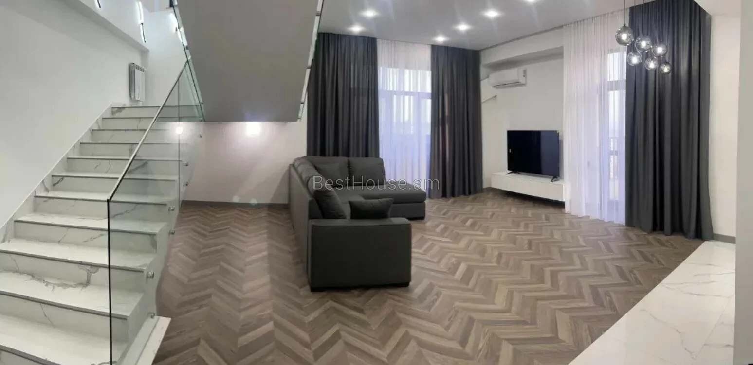 Վաճառվում է 4 սենյականոց պենտհաուս Քաղաքի լավագույն նորակառույց շենքերից մեկում, բնակարանը աբողջովին նոր վերանորոգված է և չբնակեցված, բնակարանը ունի 2 սանհանգույց, մի քանի բաց պատշգամ, պատշգամբից բացվում է գեղեցիկ տեսարան Երևան Քաղաք և Արարատ լեռ։