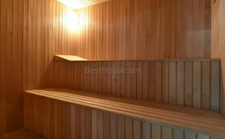 Առաջին հարկում կա տաքացվող լողավազան, սաունա, ցնցուղ։