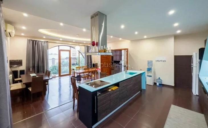 Տրվում է վարձով հարմարավետ գեղեցիկ չորս հարկանի տուն, Նազարբեկյան թաղամաս Աջափնյակում, 800 քմ, 3+ սանհանգույց, կապիտալ վերանորոգված առաձնատունը ունի նաև լողավազան։