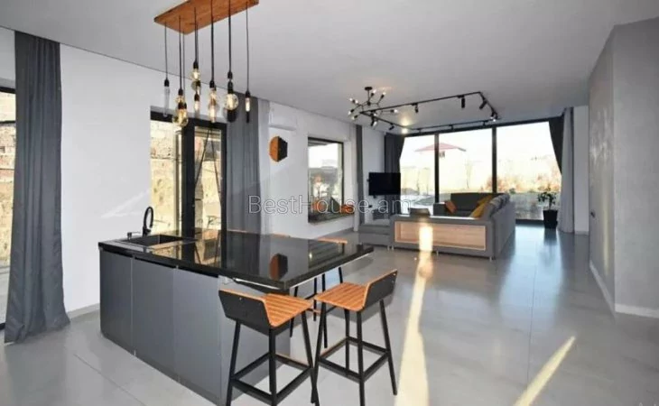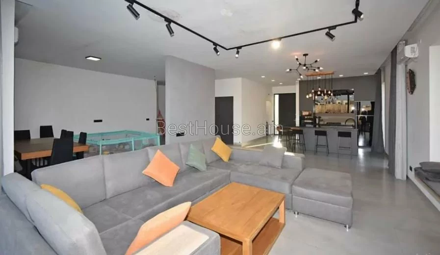 Վարձակալության է տրվում 1 հարկանի նորակառույց մոնոլիտ առանձնատուն` գեղեցիկ բակով Առինջում, Մ. Մկրտչյան 13-րդ փողոցում: Շինության ընդհանուր մակերեսը՝ 190 քմ է, հողատարածքը՝ 1000 քմ: Բակում ունի 60 քմ ամառային զրուցարան: Առանձնատունը կապիտալ նորոգված է` քիչ բնակեցված: Տեղադրված են հատակից առաստաղ ձգվող պանորամային պատուհաններ, անհատական ջեռուցման համակարգ (էներգախնայող), 2 օդորակիչ, ամբողջ տան հատակը երեսպատված է տաքացվող սալիկներով: Սանհանգույցները սալիկապատված են եվրոպական արտադրության սալիկներով և հագեցած են սանտեխնիկայով: Բաղկացած է ընդարձակ հյուրասենյակից և խոհանոցից, 4 ննջասենյակից, որից մեկը մաստերբեդրում է, 2 սանհանգույցից և զգեստասենյակից: Բոլոր սենյակներն ունեն ելք դեպի բակ: Սենյակները լուսավոր են և հարմարավետ, կահավորված են ժամանակակից նորաոճ գույքով, համալրված են նոր տեխնիկայով և բոլոր անհրաժեշտ կենցաղային պարագաներով: Բակում կա գեղեցիկ այգի` դեկորատիվ և պտղատու ծառերով: Տունը պարսպապատ է, ունի հեռակառավարվող դարպասներ, տեսաձայնագրող դոմոֆոն, ավտոմատ ոռոգման համակարգ և ջրի ռեզերվուար: Այգին խնամվում է մշտապես, սպասարկման վճարը ներառված է գնի մեջ: