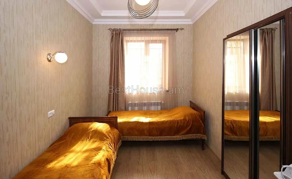 Կապիտալ վերանորոգված և կահավորված տուն: 1 մեծ հյուրասենյակ (հեռուստացույց), 2 ննջասենյակ, 1 խոլ, 1 խոհանոց (սառնառան, գազօջախ) և 1 սանհանգույց (լվացքի մեքենա) : 35 քմ տարացք-ավտոկայանատեղի շենքի դիմացի հատվածում: Հարմարավետ բակային հատվածք տաղավարով: Մուտքը Չարենց և Վարդանանց փողոցներից: Օդորակիչ, Wi-Fi, տեսահսկման համակարգ: