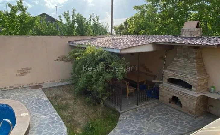 Տան առաջին հարկում կա խոհանոց, սանհանգույց, 2 տնտեսական սենյակներ-խորդանոց, խաղասենյակ կահավորված և հյուրասրահ-բառ։ Երկրորդ հարկում կա մեծ նախասրահ, 3 ննջասենյակ, խոհանոց, երկու սանհանգույց և հյուրասենյակ որն ունի մեծ վիտրաժային դռներ, որոնք բացվում են դեպի պատշգամբ, որտեղից կարող եք իջնել անմիջապես դեպի լողավազան և գեղեցիկ տեսարան դեպի Արարատ լեռը: Բակում կա ամառային տաղավար, քարե մանղալ, ավտոտնակ, լողավազան և այգի պտղատու ծառերով։ Տունը շրջափակված է քարե բարձր պարիսպով։ Տունը կառուցված է ամենաորակյալ և թանկարժեք նյութերից։ Ունի երկու մուտք, ապահովված է անվտանգության համակարգով, ջեռուցման համակարգով, օդորակիչներով, ինչպես նաև միացված է կենտրոնական կոյուղու համակարգին։ Տունը կառուցելուց հետո չի բնակեցվել։
