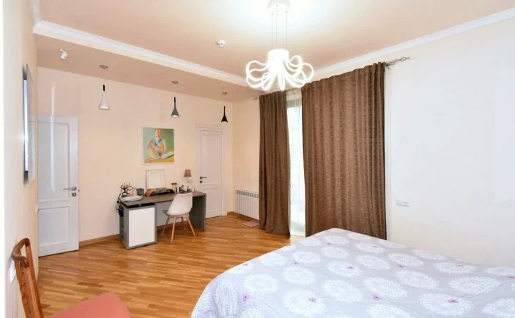 ...Վարձով է տրվում 5 սենյականոց նորաոճ առանձնատուն էլիտար Վահագնի թաղամասում : Առանձնատունը ապահովված է կոմունալ բոլոր հարմարություններով , կահույքով և տեխնիկայով : ՈՒնի լուսաոր հյուրասենյակ , խոհանոց, 4 ննջասենյակ , 3 սանհանգույց , լվացքի սենյակ : Կիսանկուղային հարկում գտնվում է ավտոտնակը և մառանը : Ջեռուցվում է կաթսայի միջոցով , տեղադրված է նաև օդորակիչներ : Ունի 2 բաց պատշգամբ գեղեցիկ տեսարանով :