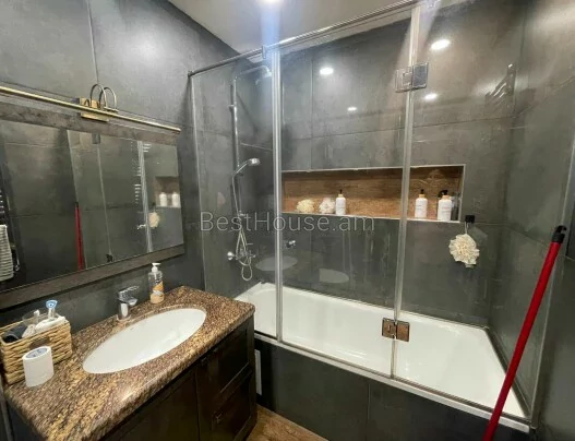 Բնակարանը վերանորոգված է, առաջին գիծ: Մուտքի դուռը՝ երկաթյա, հատակը՝ մանրահատակ, պատուհանները`եվրո: Սանհանգույցը և զուգարանը առանձին, սալիկապատ: Ունի նկուղ՝ 40 քմ, փակ լոջա, ջեռուցման համակարգ, մշտական ջուր, գազ։ Վարձով է տրվում ամբողջ գույքով և տեխնիկայով։
