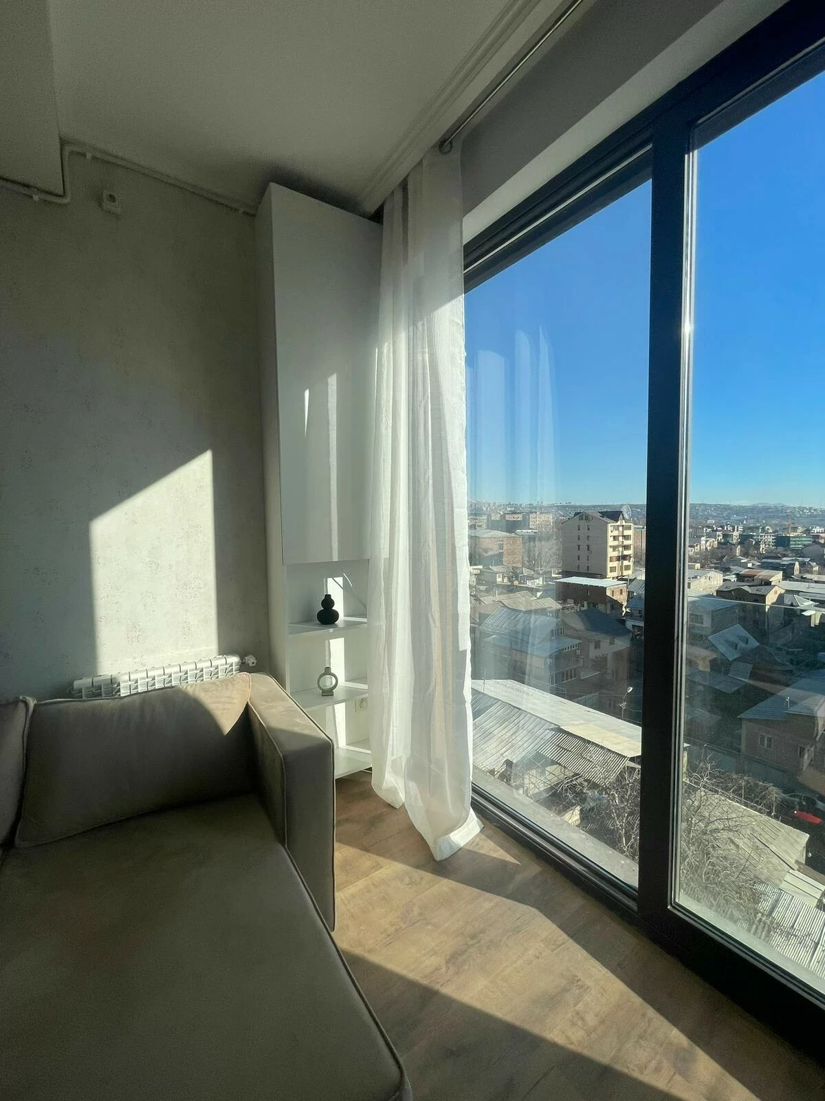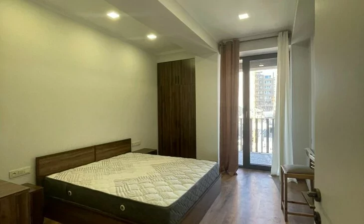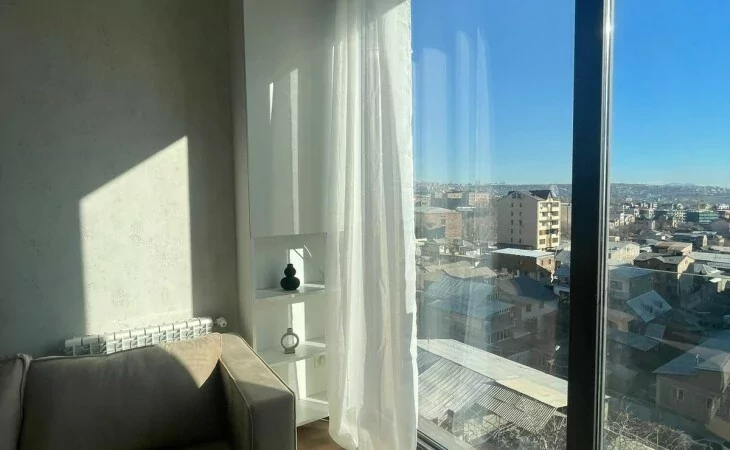 ՝ Ռուբեն Սևակի փողոցում , նորակառույց էլիտար շենք : Բնակարանը ունի 2 ննջասենյակ , 2 սանհանգույց , 2 բաց պատշգամբ : Բնակարանը շատ լուսաոր է և արևկողմ ,ունի տեսարան դեպի Արարատ : Շենքը ունի լողավազան :