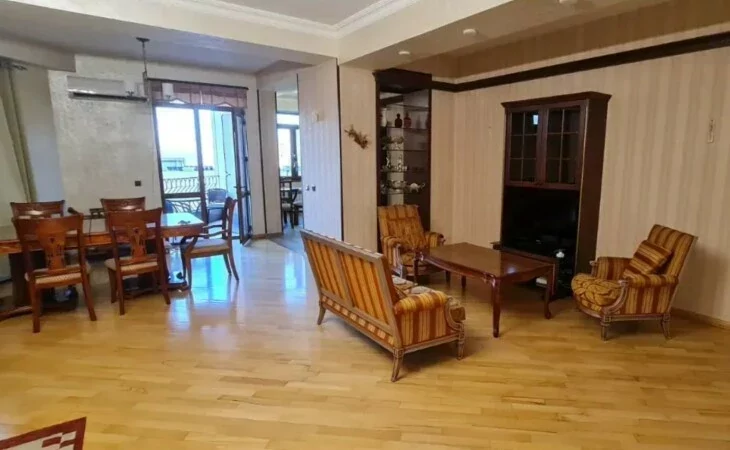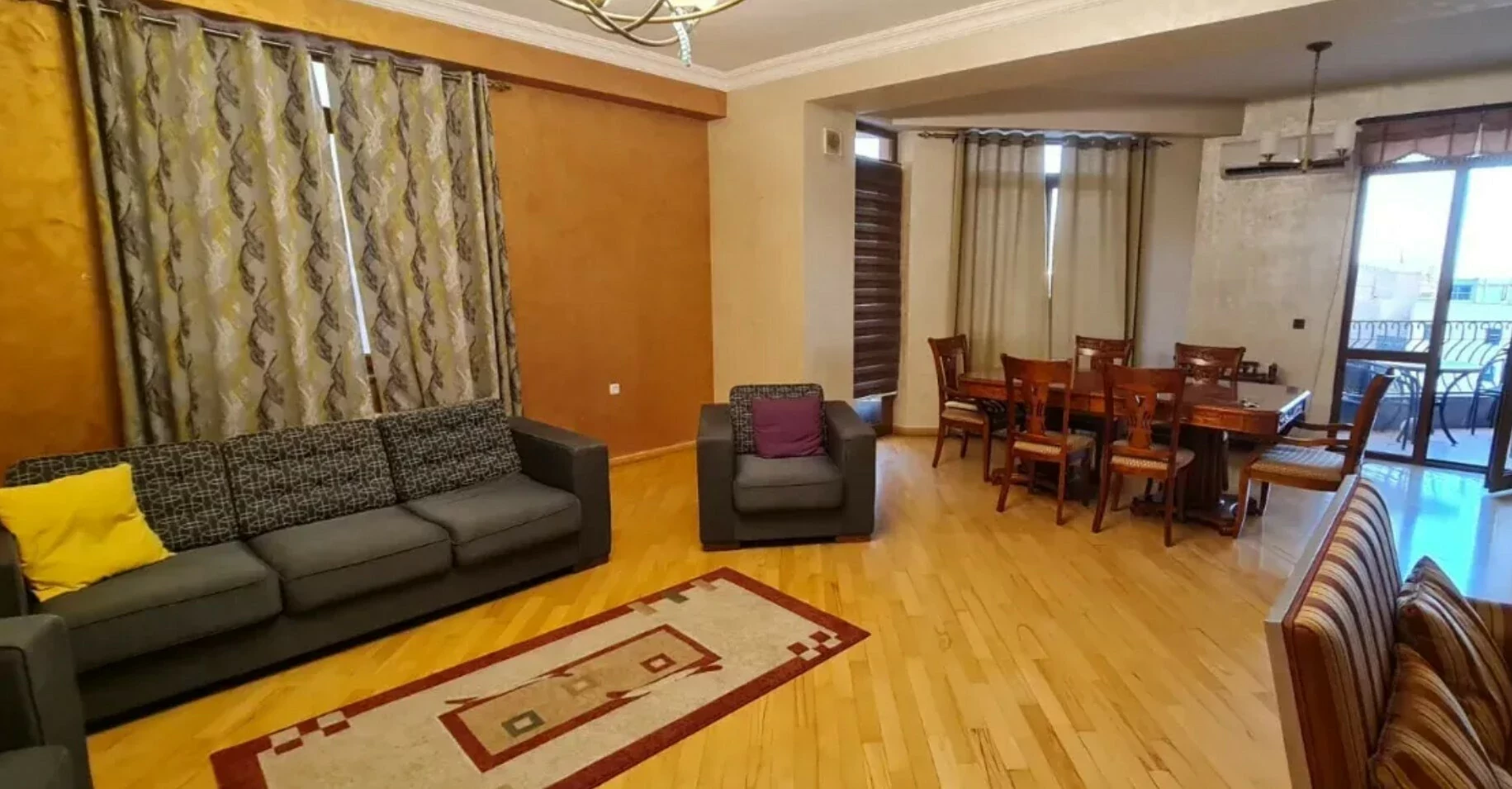 Ամերիկյան համալսարանի հարևանությամբ նորակառույց շենքում, որտեղ գործում է 24/7 անվտանգության ծառայություն վարձակալության է հանձնվում հարմարավետ 4 սենյականոց բնակարան, որը ունի 3 բաց պատշգամբ։