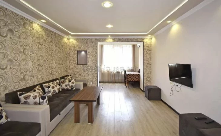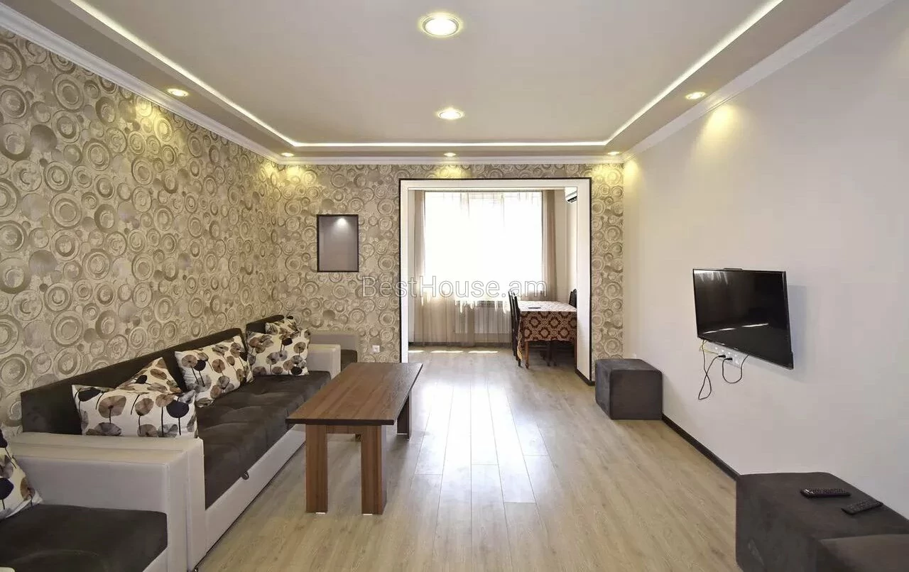 Կոմիտասի-Վրացական փողոցների խաչմերուկ, 5 հարկանի քարե շենքի 2-րդ հարկում վարձով է տրվում 3 սենյականոց ամբողջությամբ կահավորված բնակարան-նոր վերանորոգված, 2 ննջասենյակ (երկտեղանոց մահճակալներով), 2 օդորակիչ Երկարաժամկետ վարձակալության դեպքում 230.000 դրամ օրավարձի դեպքում օրական 20.000 դրամ կախված հյուրերի քանակից։ • Կապիտալ վերանորգված է, գերազանց վիճակում է գտնվում, նոր կահույք և տեխնիկա • Վերանորոգումը կատարվել է բարձր որակի նյութերով, • Ջեռուցվում է անհատական ջեռուցման համակարգով (Baxi), 2 օդորակիչ։ • Արևի նկատմամբ ամենալավ դիրքը, ունի 4 արտաքին պատուհան, • Ննջասենյակների հատակը լամինատ է խոհանոցը ու սանհանգույցը սալիկապատ, • Առաստաղի բարձրությունը 2.80 մ. • Շատ մոտ է կանգառին և խանութներին, Կոմիտասից 200 մետր հեռավորության վրա է:
