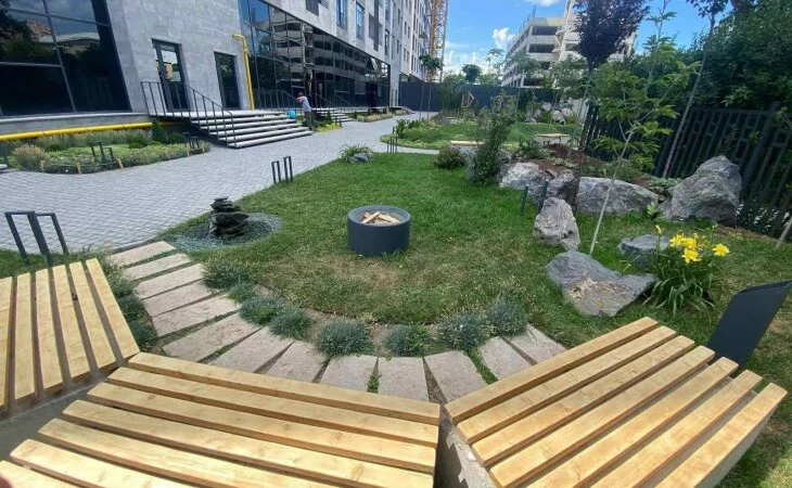 • 4000 ք/մ կանաչապատ փակ այգի՝ մանկական խաղահրապարակով, որտեղ մեքենաների մուտքը արգելված է
