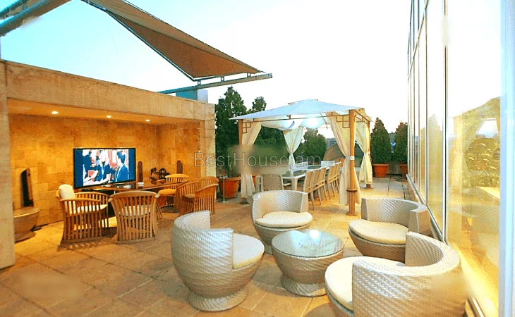 4 ննջարան, որոնցից մեկն իր առանձին զգեստասենյակով և սանհանգույցով: Մյուս 2 ննջասենյակների համար կա նախատեսված սանհանգույց, ինչպես նաև 1 սանհանգույց հյուրերի համար: Ունի ընդարձակ բաց պատշգամբ՝ մոտ 20 քմ մակերեսով, որտեղից բացվում է գեղեցիկ տեսարան: