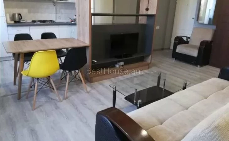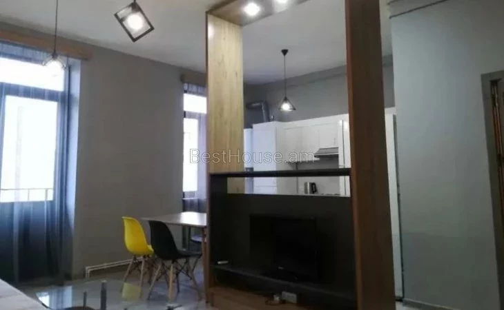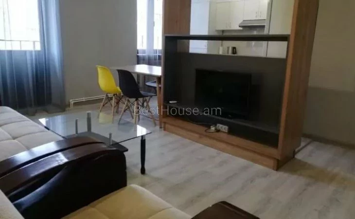 Վարձով է տրվում 2 սենյականոց բնակարան 5 հարկանի քարե շենքի 4 հարկում: Արևկող բնակարան է ունի բաց մեծ պատշգամբ, Հանրապետության փողոցին նայող: Բնակարանը կապիտալ վերանորոգված է, կահավորված: Տեղադրված են ջեռուցման համակարգ, օդորակիչ, լվացքի մեքենա և այլ կենցաղային տեխնիկա: