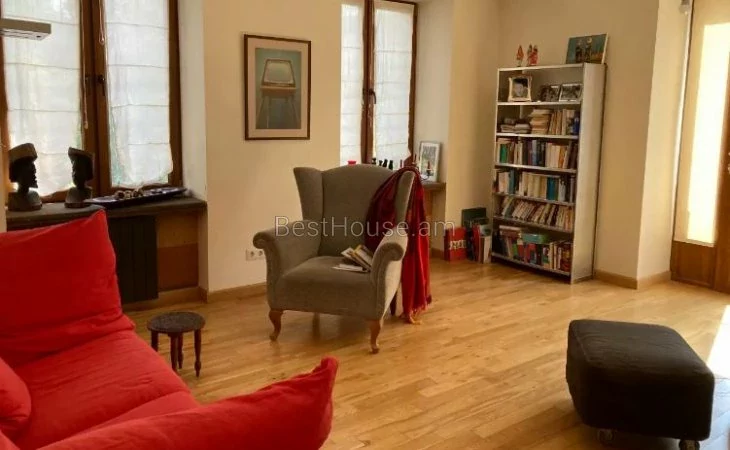 Բնակարանը գտնվում է Երևանի հենց սրտում՝ իդեալական վիճակում, վերանորոգված: 88 քմ մակերեսով լուսավոր բնակարանը ունի 1 ննջասենյակ, հյուրասենյակ, 1 ճաշասենյակ, 1 աշխատասենյակ, 1 խոհանոց, 2 զուգարան, 1 լոգարան, 1 բաց պատշգամբ՝ դեպի օպերա տեսարանով: Եվս 3 պատուհան նայում են դեպի Սարյանի պուրակ: Մյուս երկուսը՝ բակի կողմ: Բոլոր տեսարանները ծառաշատ են: Խոհանոցը, հյուրասենյակը, աշխատասենյակը չունեն իրենց մեջ բաժանող դռներ, ստուդիո տեսակ է: Ապահովված է ջեռուցման համակարգով (ariston) : Խոհանոցը կահավորված է բարձրորակ սառնարանով, ինդուկցիոն գազօջախով, ջեռոցով, կլինկեր ոճի կահույքով: Փոքր զուգարանում առկա է լվացքի մեքենա և չորանոց: