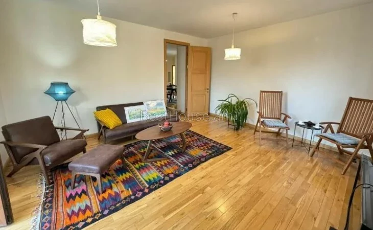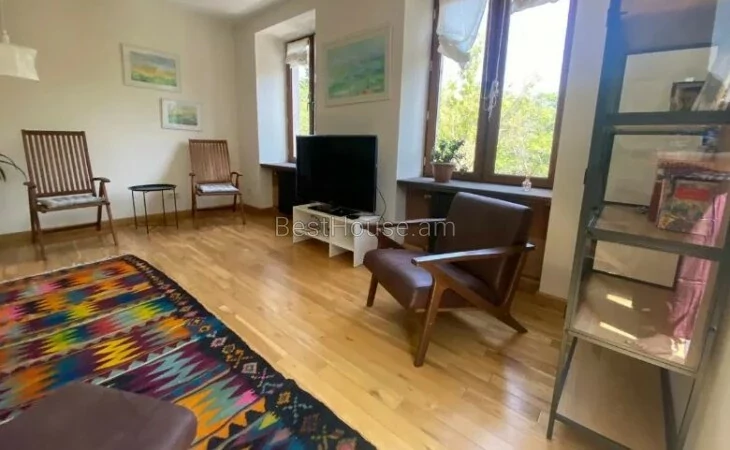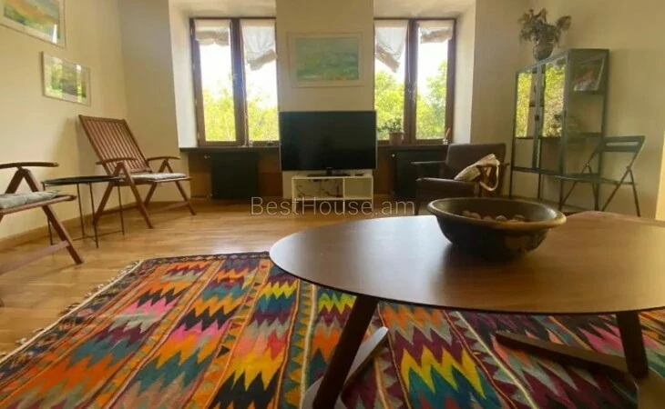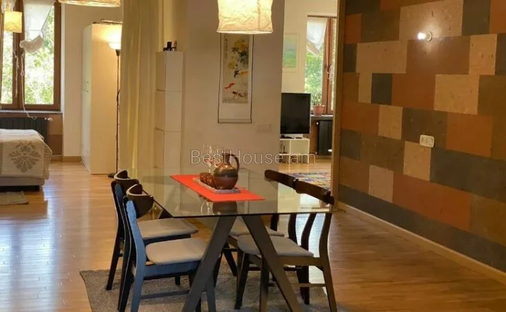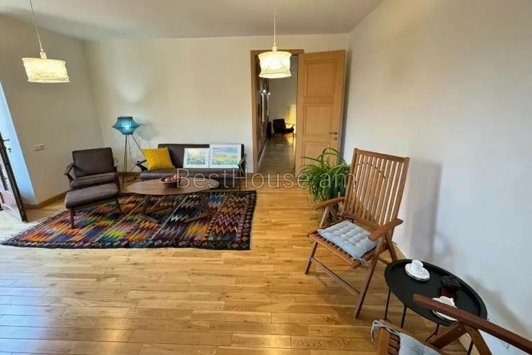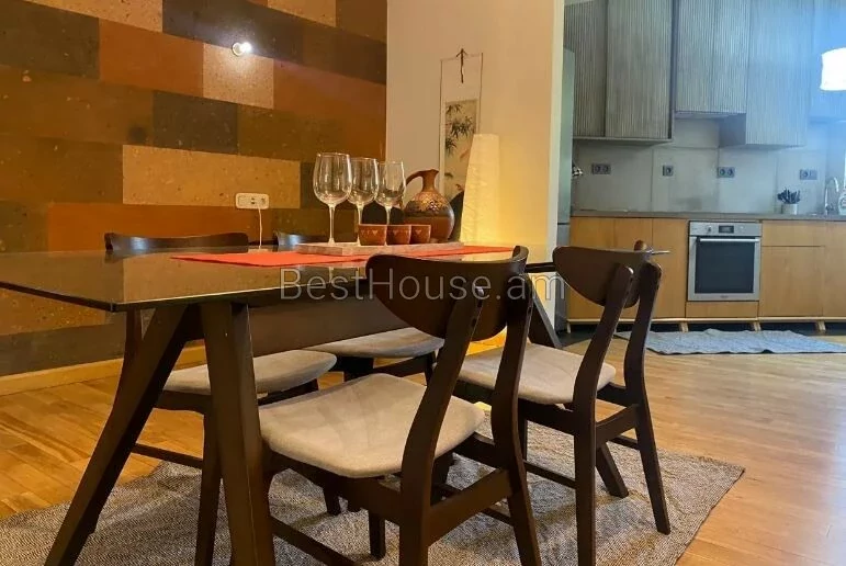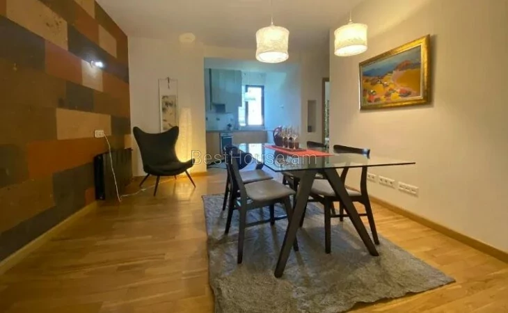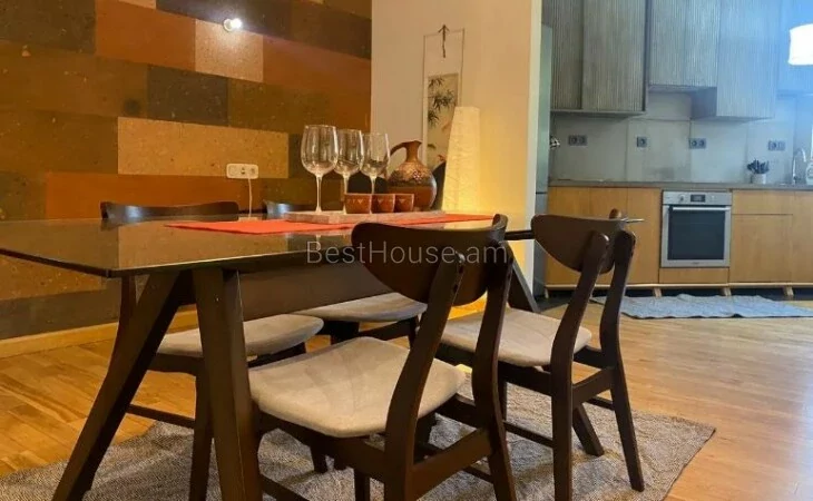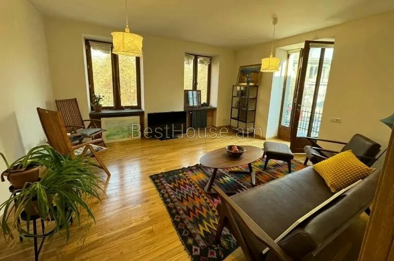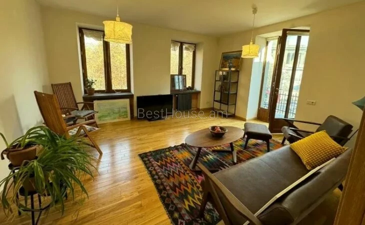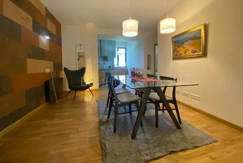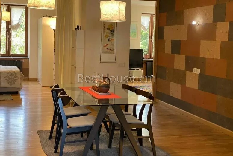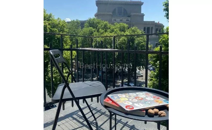 Բնակարանը գտնվում է Երևանի հենց սրտում՝ իդեալական վիճակում, վերանորոգված: 88 քմ մակերեսով լուսավոր բնակարանը ունի 1 ննջասենյակ, հյուրասենյակ, 1 ճաշասենյակ, 1 աշխատասենյակ, 1 խոհանոց, 2 զուգարան, 1 լոգարան, 1 բաց պատշգամբ՝ դեպի օպերա տեսարանով: Եվս 3 պատուհան նայում են դեպի Սարյանի պուրակ: Մյուս երկուսը՝ բակի կողմ: Բոլոր տեսարանները ծառաշատ են: