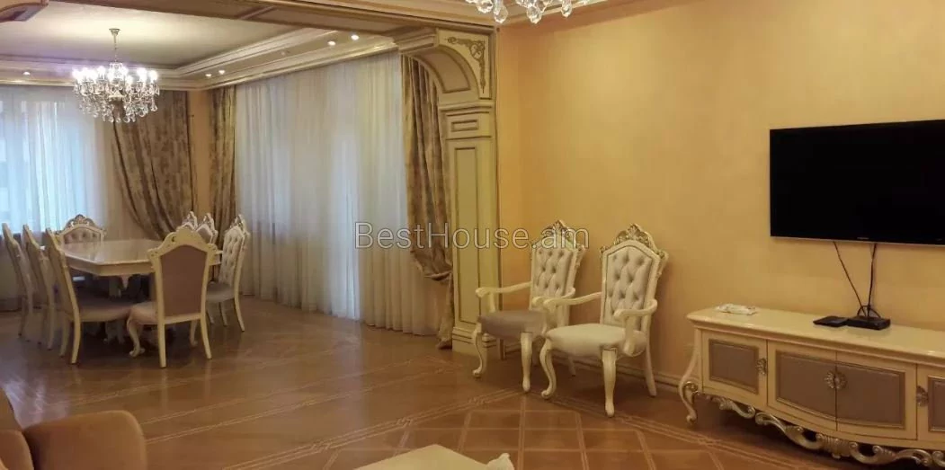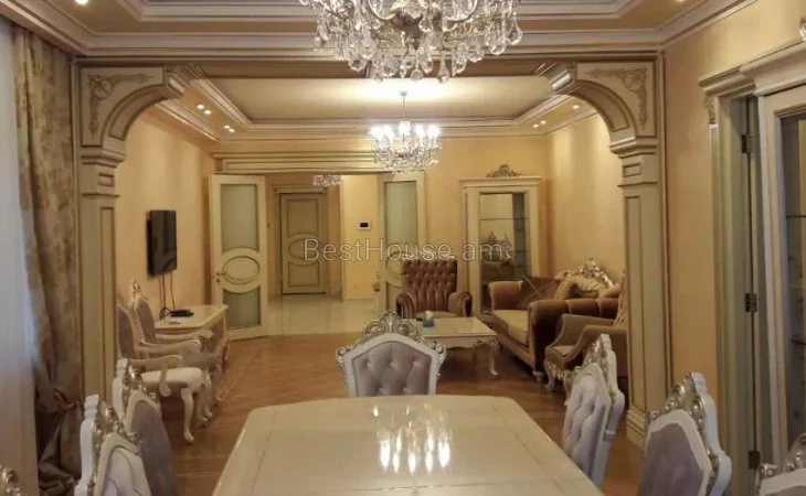 Բնակարանը տրվում է 6-ամիս և ավել ժամանակով ,բնակարանում առկա է՝ 1-հյուրասենյակ 3-ննջասենյակ Մեծ խոհանոց 2-սանհանգույց 1-լվացքատուն Կենտրոնացված ջեռուցման և հովացման համակարգ (Ֆանկոլ) 3-մեքենայի ավտոտնակ պարկինգում Բնակարանը կահավորված է և շքեղ վերանորոգված: