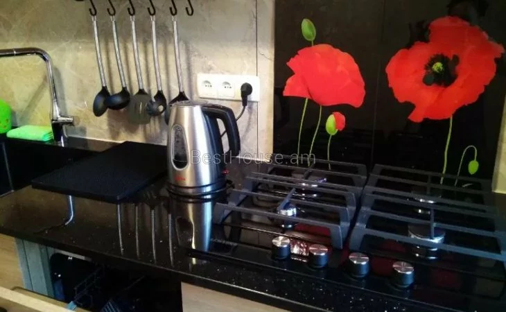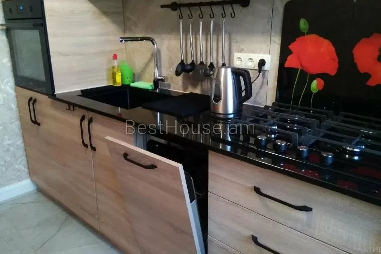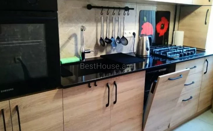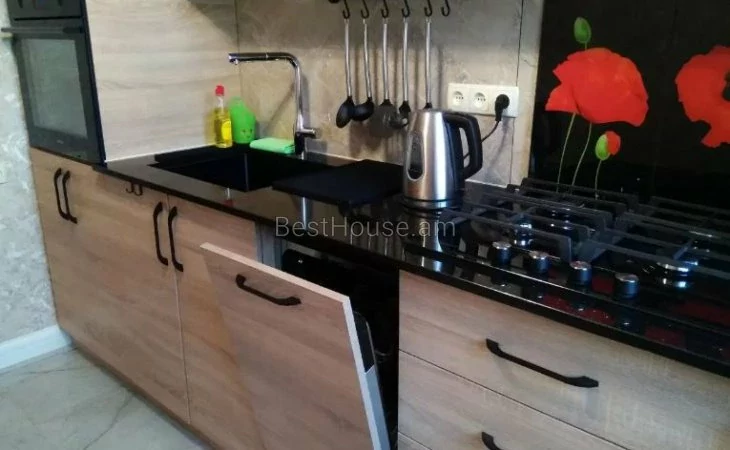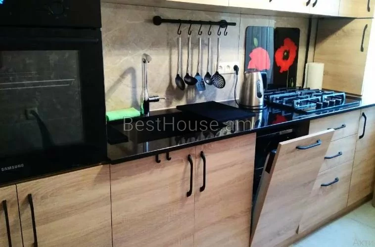 Բնակարանը կահավորված է։ Պատուհանով և ժամանակակից տեխնիկայով խոհանոցն առաջարկում է այն ամենը, ինչ այսօր անհրաժեշտ է. Գազօջախ, վառարան, աման լվացող մեքենա և ընդարձակ սառնարան՝ առանձին սառցախցիկով։ Առկա է ջեռուցման գազային կաթսա (մոդել BAXI Italia) ։ Բոլոր սարքերը նոր են։