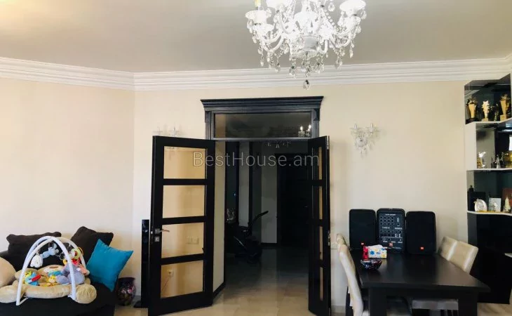 Վաճառվում է 4 սենյականոց բնակարան Բաղրամյան փողոցում։ Նորակառույց շենքում։ Բնակարանը կապիտալ վերանորոգված է: Մուտքի դուռը՝ երկաթյա, պատուհանները՝ եվրո, հատակը՝ պրեսգրանիտ: Սանհանգույցը (2) ՝ իսպ. Սալիկապատ: Ունի 3 բաց պատշգամբ, տաքացվող հատակ, օդորակիչներ: Շենքում կա 24 ժամյա անվտանգություն։ Վաճառվում է կահույքի և տեխնիկայի հետ միասին: Բնակարանն ունի քաղաքին ու Արարատին նայող հրաշալի տեսարան։