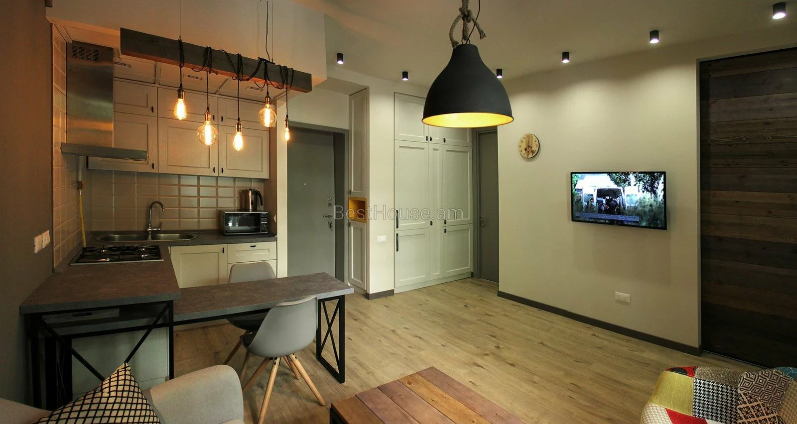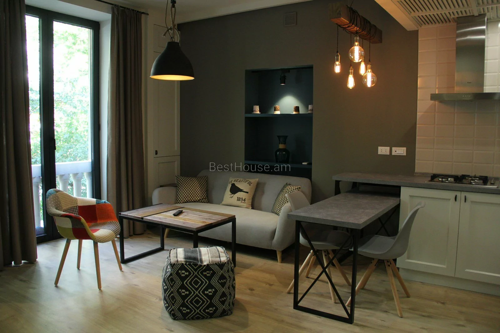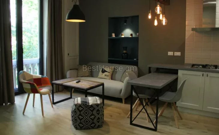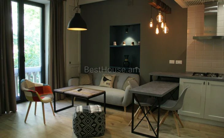 Դիզայներական ոճով վերանորոգված հարմարավետ բնակարան փոքր կենտրոնում: